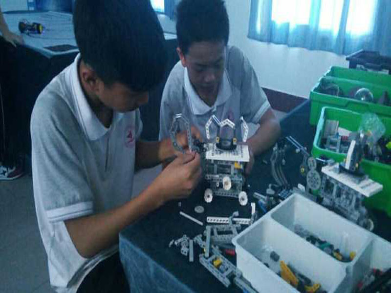 刚开始进去机器人工作室,我们也只是学习怎样拼装机器人,但是看到学哥们给我们演示怎么做,感觉好神奇,于是继续努力的学习怎样拼装。