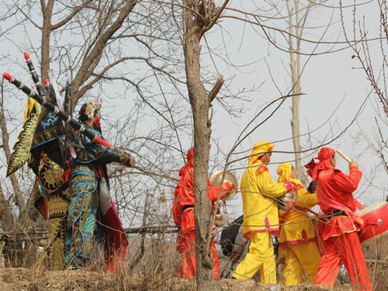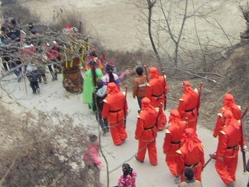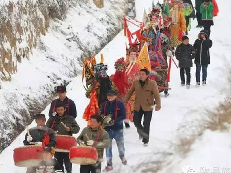 每到过年,我们村就会组织各式各样的社火。今天是正月初五,一大早,尚在被窝的我就被当村民委员会主任的二伯拽出被窝,赶往村委会的社火集结地。今天我们要去演"地台社火","地台社火"规模可大可小,小的只有区区十几人,而规模大的却可达到几十上百人,而且多以亲壮年为主。十点多,我们都化妆完毕,在村里年长老人的带领下开始挨家挨户演"地台社火",按照习俗,我们要从村头开始演起,一直演到村尾结束。演的内容也多种多样,各不相同。