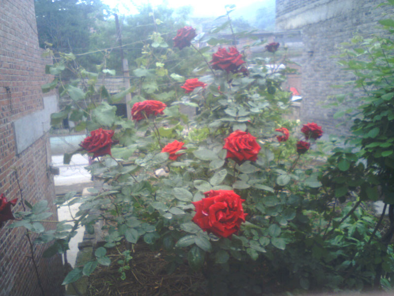 再往前走,是一株红色玫瑰,当夏天的时候,它开得正旺,实在是美丽极了。记得它是我五年级的时候在街上一元钱三株买来的,其中就只有这一株幸运的活了下来,我当时看见它弱小的枝干,只要求保住它的生命,我就心满意足。后来我看它渐渐的长大了,我辛勤为它锄草,施肥。没过多久,它就长出了一朵小花苞,说句心里话,它开的第一朵花不是很好看,但是我的心里是甜甜的。没想到现在它开得是这样鲜艳,这样美丽,让我不可思议,这也是它给我的一惊喜,我一定要好好待它。