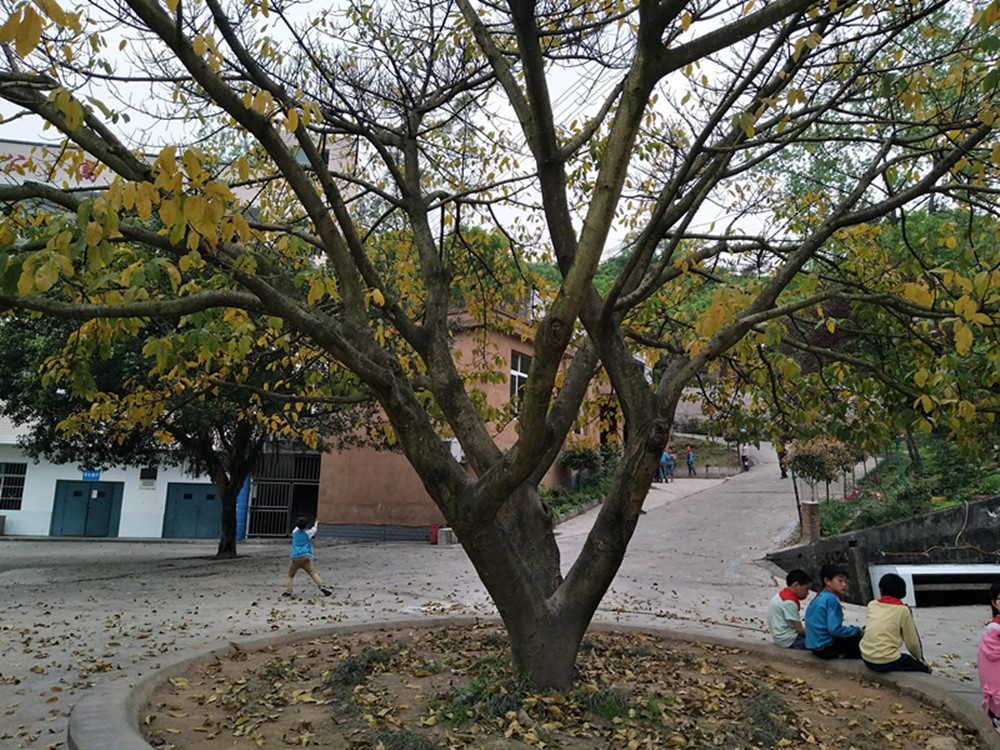 夏天快来了,黄果树的叶子慢慢地落下来了,最后黄果树身上已不再有黄蝴蝶了,光秃秃地就像一个老头站在那看着同学们的一举一动,监视着他们的学习。