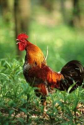 大公鸡来我家不久,便当上了鸡群里的老大。每天,它顶着鸡冠,昂首阔步,似一个将军在检查它的部队,又像一个好斗的勇士,发亮的眼睛闪着挑战的光。一张又黄又尖又硬的嘴巴,啄一下人,准痛得让人哇哇大叫。这位鸡老大还有一对锋利无比的爪子,是大公鸡的秘密武器。看!就是因为有这些,它总是神气无比! 好像在说:“我是老大,你们都要听从我的指挥。”