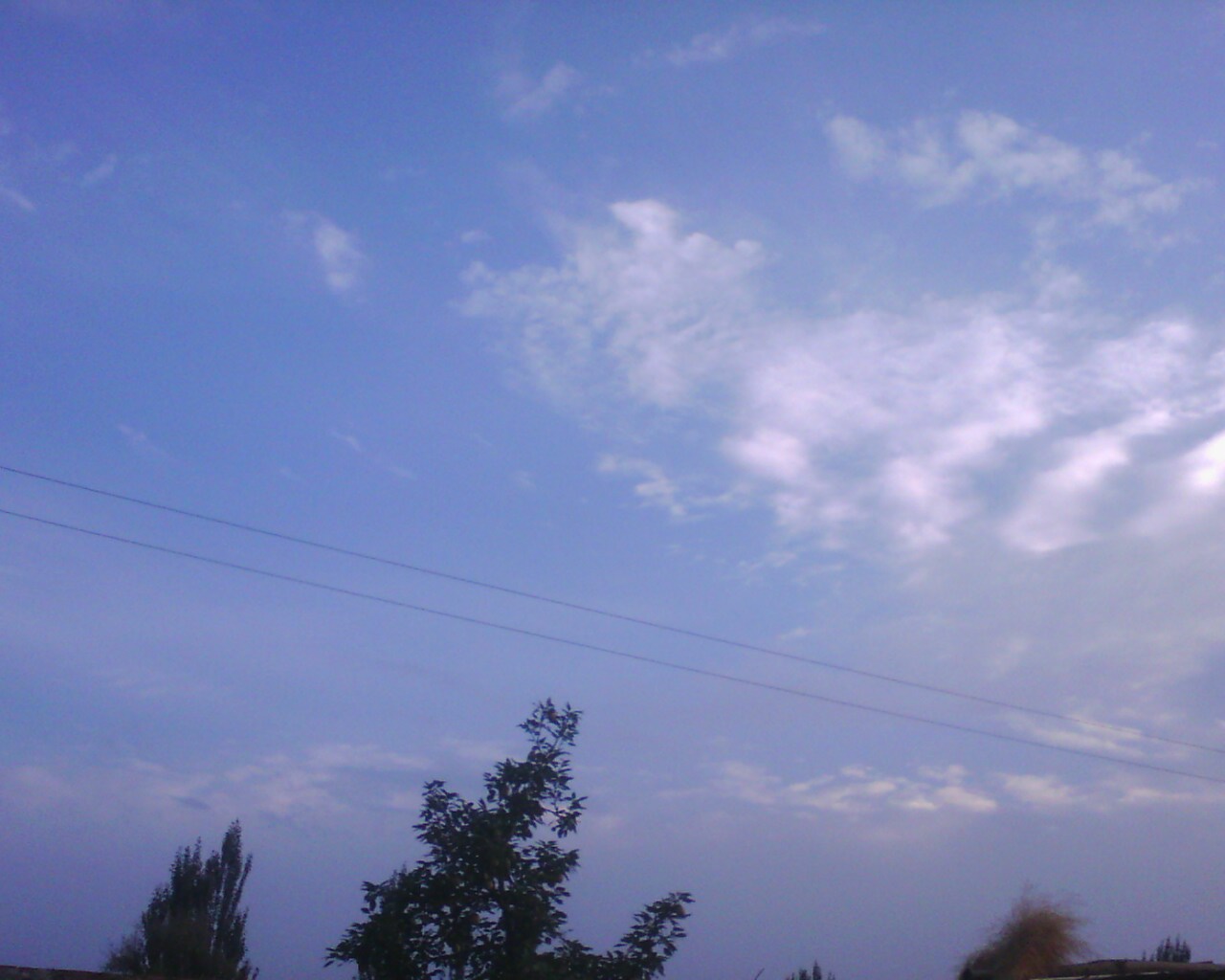 不一会儿,白云变成了另外模样:有的像一座座险峻的火山,有的像一团团棉絮,还有的像一朵朵梨花,开放在浩瀚的天空!