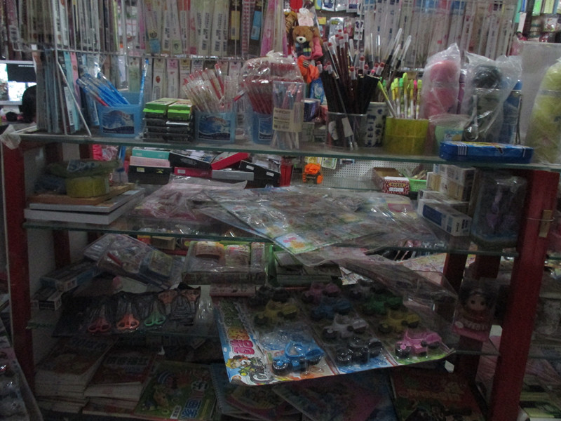 再往里走,左边右边各一个柜台,左边的柜台上放着监视器,右边的柜台自然是收银台之类啦!这个文具店的老板和老板娘性格也很好,热情、宽容、善良、大方。