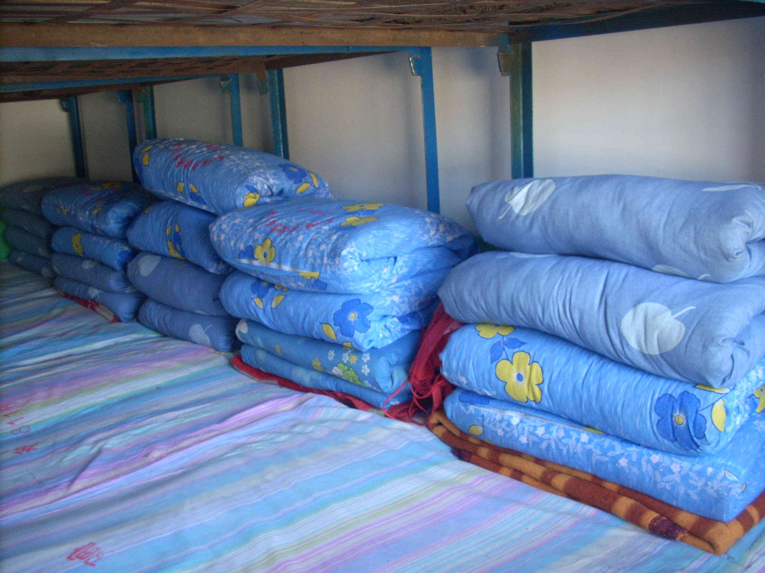 进入宿舍,充满了眼球的就是那四张拼在一起的高低床了。床上面的主要问题、被套全部干净、整洁。被子和枕头的放置也很统一整齐。给人一种非常精神的感觉。
