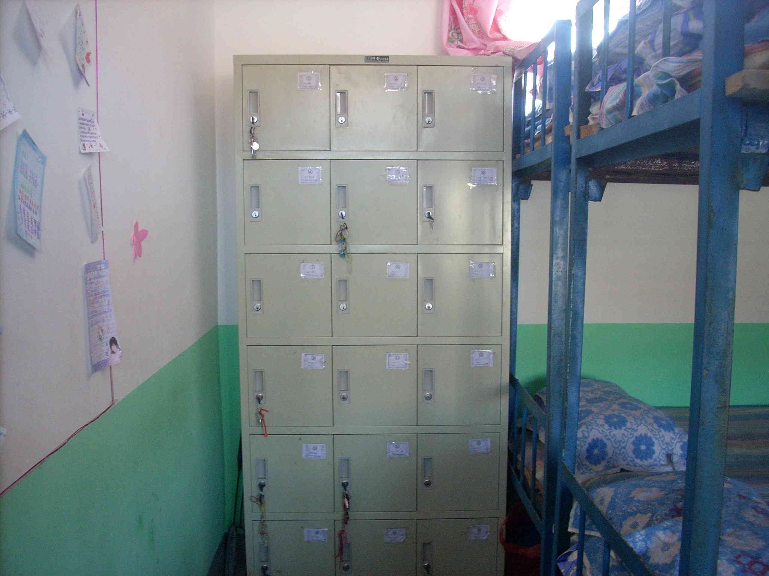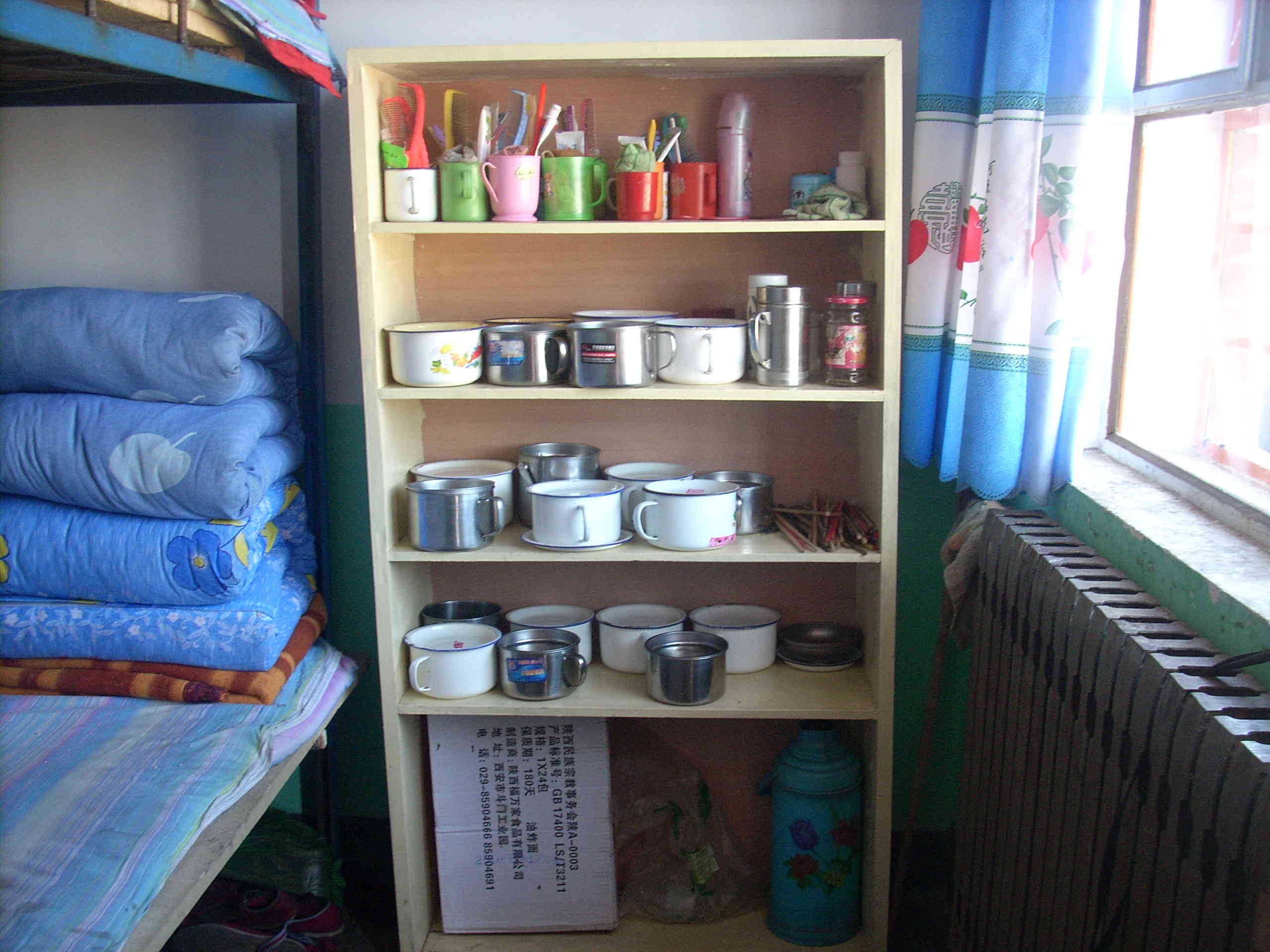 在床的边上是一个大柜子,它上面又有着好多个小柜子,基本上我们整个宿舍的人每人都可以拥有一个小柜子。在这些小柜子里面,放着我们的一些小秘密和一些我们认为是很重要的东西。