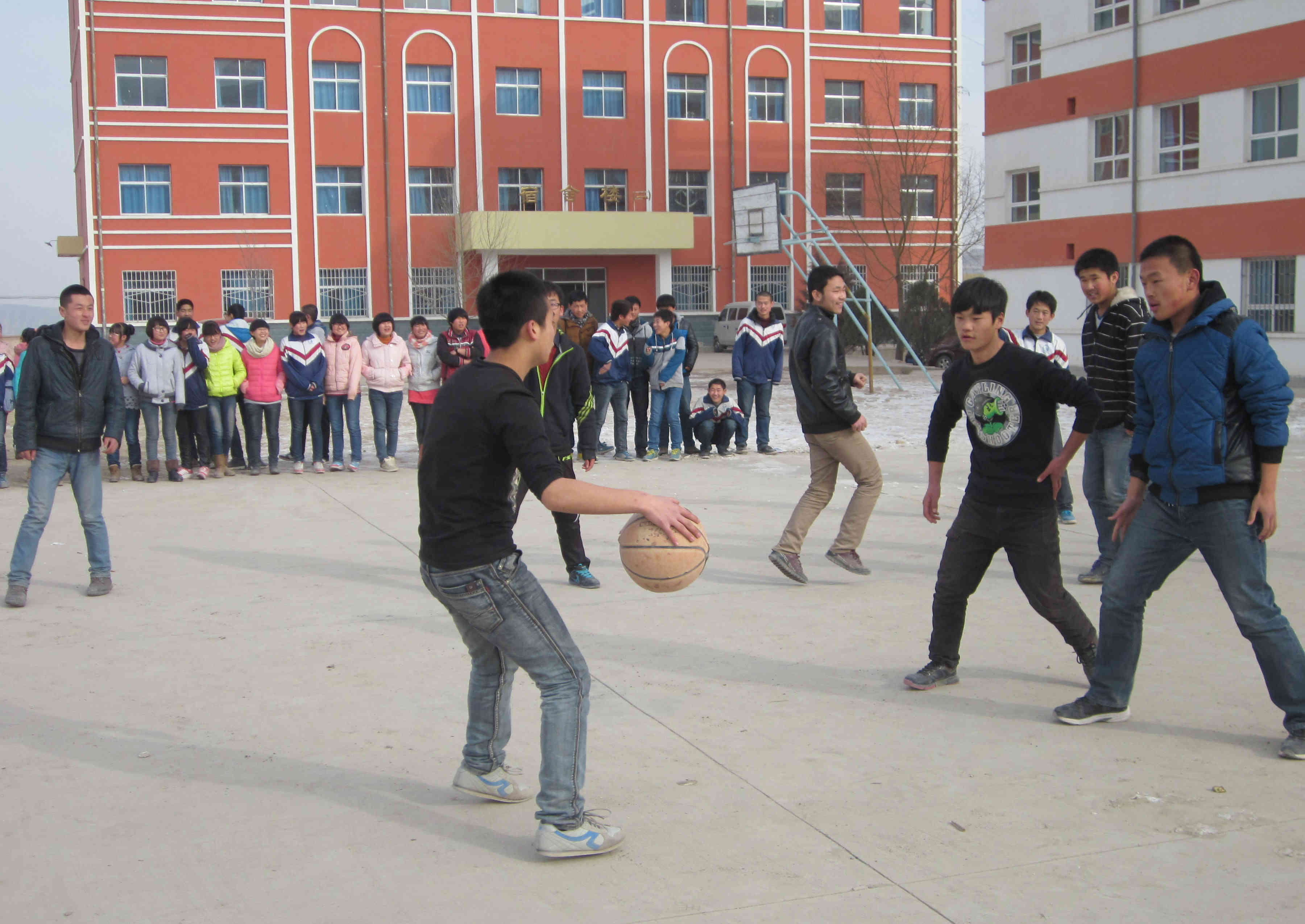 在操场,有打篮球的同学;有打乒乓球的同学;当然还有那些哭丧着脸搞卫生的同学,他们似乎很不高兴,或许是老天没有眷顾他们吧,竟让他们在这样的黄金时间搞卫生。