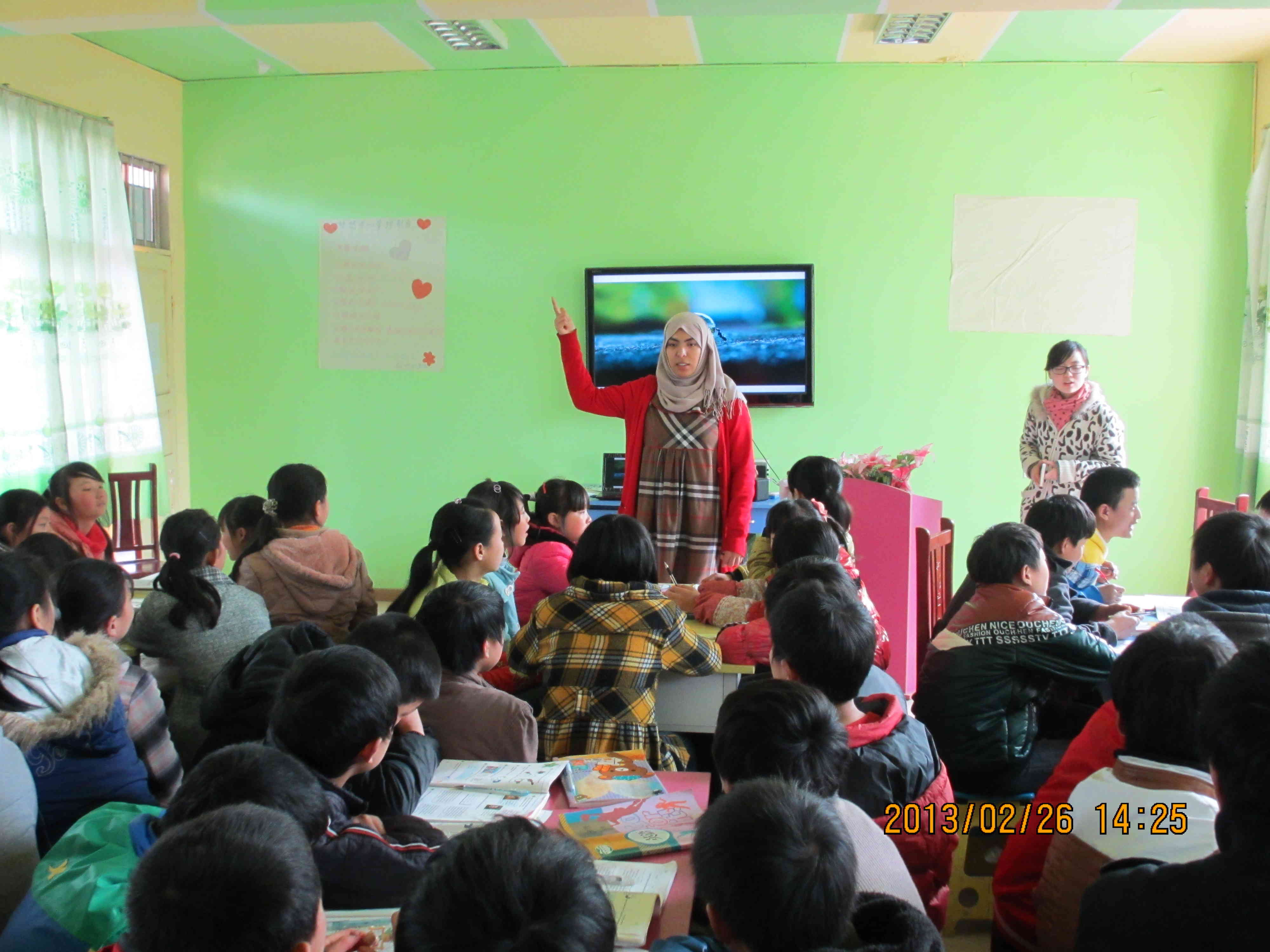 今天翻阅相册,无意中看到了几张外国志愿者来我们巴中市巴州区花溪小学支教的图片,百感交集。那是2013年2月26日,由大巴山生态与贫困研究会组织的外国志愿者男男女女一行6人来到了我们这所极其偏远的农村中心小学支教。支教老师有来自美国的,英国的,加拿大的,等等,他们那高大的个子,奇异的长相和装扮引得全校师生像看西洋镜一样好奇。要知道,我们这所偏远村小,连大城市的人都很少见过,别说外国人。这些支教者不远万里来到我们这个山旮旯里,自然很受我们学校领导重视,直接向外国老师取经的机会难得嘛。学校教务处召开紧急会议,要求各教研组认真组织老师听课,特别是听英语课。领导强调要学习他们先进的教育思想和方法。机会难得呀!这天一整天,我们学校老师轮流到梦想中心教室听课。那些老师一个个轮流上课,叽哩哇啦的,连说带比划,不说学生,连老师都听来困难,幸亏旁边还有个翻译,有时解说一下。当然,他们那种活泼的讲课形式,还是将懵懂听课的学生兴趣激发起来了。课堂上不时传来开朗的笑声。