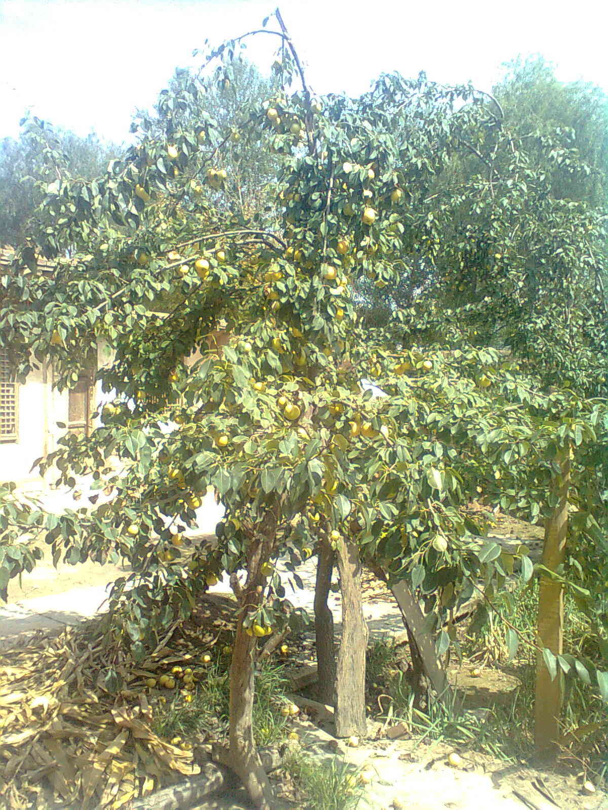 这棵树很神奇,它结有两种果子,一种是香水梨,一种是鸭梨,这是梨树嫁接的结果。每到秋天的时候,香水梨是最早成熟的,也被人们称作“早酥梨”。这种梨皮很脆,味甜,水也很多。在你口渴的时候,吃它比喝水还解渴,所以我们去地里割麦子的时候,即使不带水也会装上几个梨。