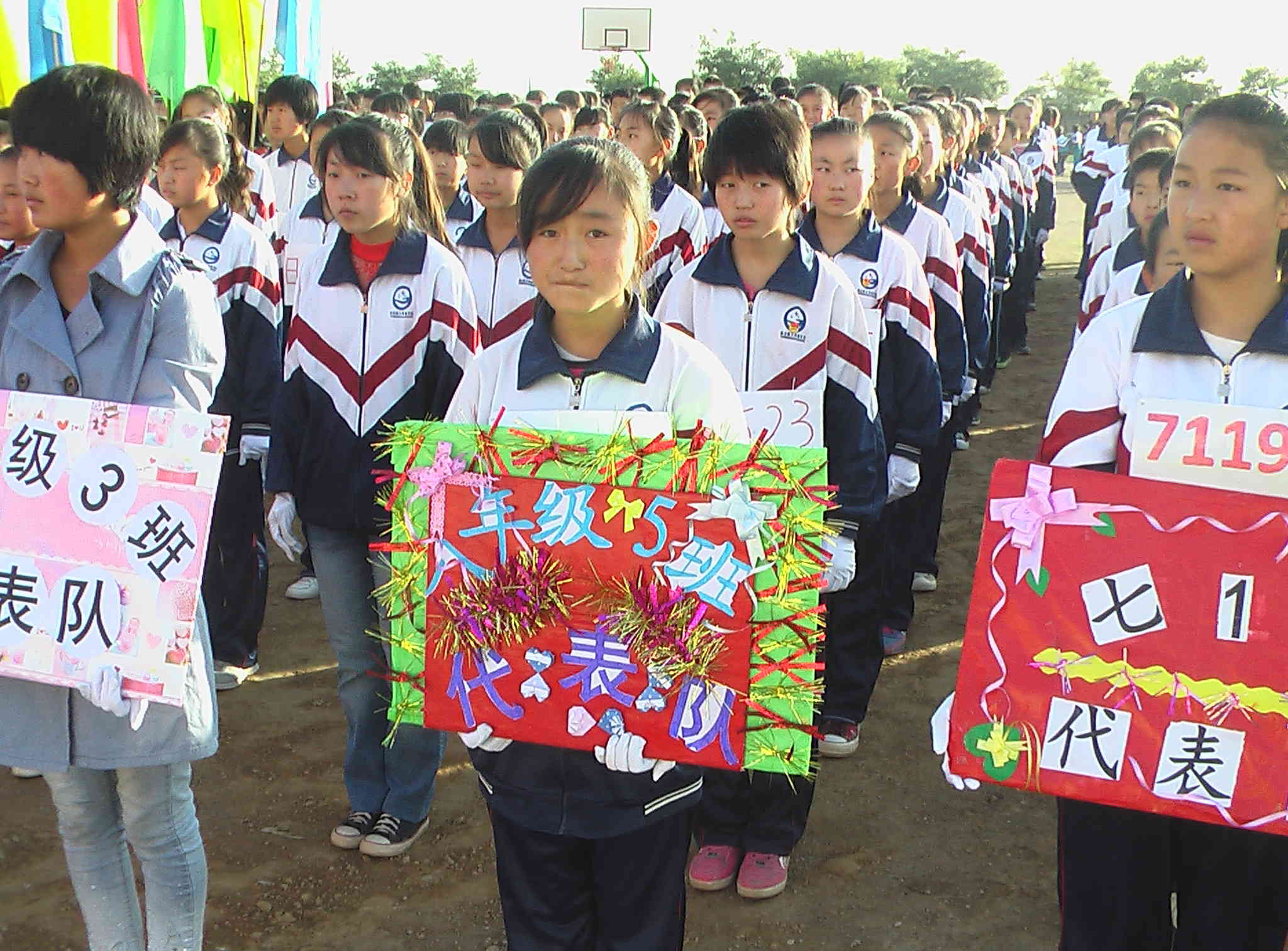 气势雄宏的队伍像波涛汹涌的浪般涌来,到主席台时,那嘹亮的口号声回荡在操场里,震憾了人心,仿佛一切都被唤醒了,草草木木都在为我们欢呼。