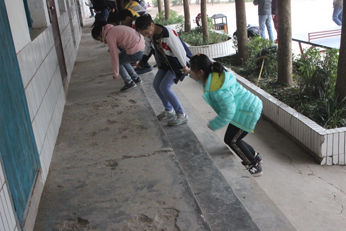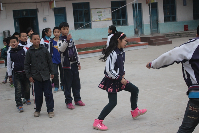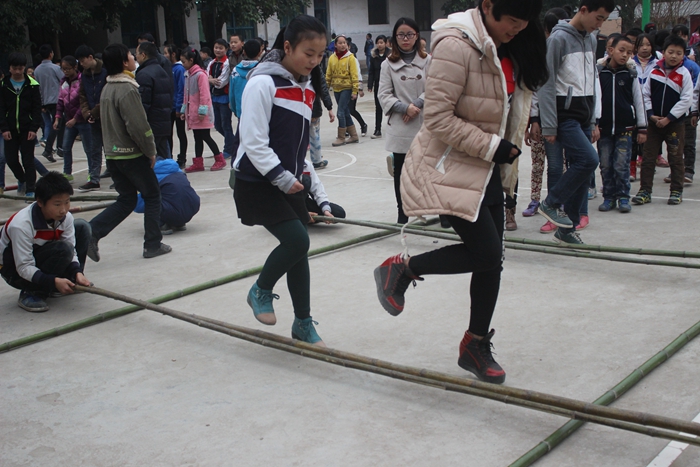 下一项是最有趣的了:五、六年级跳大绳,七、八年级跳竹竿舞,九年级做准备活动。队形迅速站好了。先是我们这组跳。我们这组有好几个实力战将呢!一连几个都没断,可到了中间,一下子跳乱了:有一个没跳过,有一个从绳子中间跑过,还有一个不跳了,直接从绳后绕过去……把这些尽收眼底的刘主任把我们骂了一顿之后,我们便不敢再乱跳了。该另一组跳的时候我看了看七年级跳的竹竿舞:有节奏的敲打声、整齐的步伐、两个一组不停地跳着……看看他们,再看看我们,唉!真想和他们一样,快乐地跳竹竿舞啊!