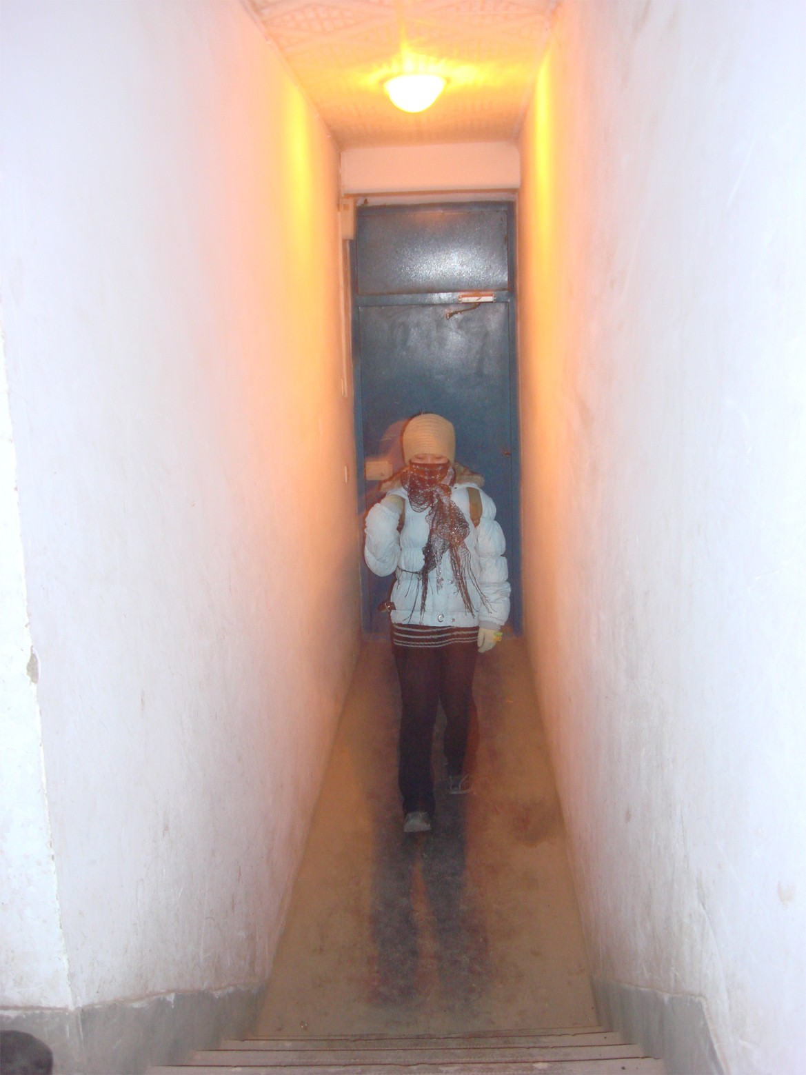 进入单元门首先是6米长的过道,过道有些狭窄,也有些阴暗,因为只有一个节能灯,在散发着昏暗的光亮,其实真正让我感到压抑的是它一进门就面对着是地下室的出口,哪里没有灯,巨大的进口仿佛是魔幻世界的入口,每次都有许多的幻觉在脑海中闪过,我期望在里面忽然出现梦中的渴望,可是更多的时候它让我产生某些恐惧。