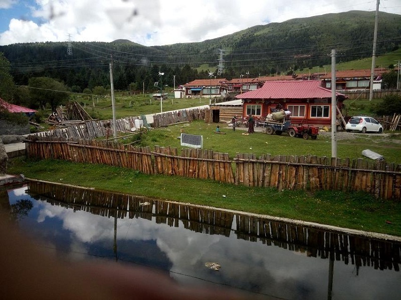 路边的土地上,全是青稞、牦牛,那是我第一次看到牦牛和青稞。在不远处的山上还有藏文,青翠的山坡上还有绿油油的大树,蓝蓝的天空中有几朵洁白的云,这幅美丽的画面正是出于大自然这个著名的创造家。