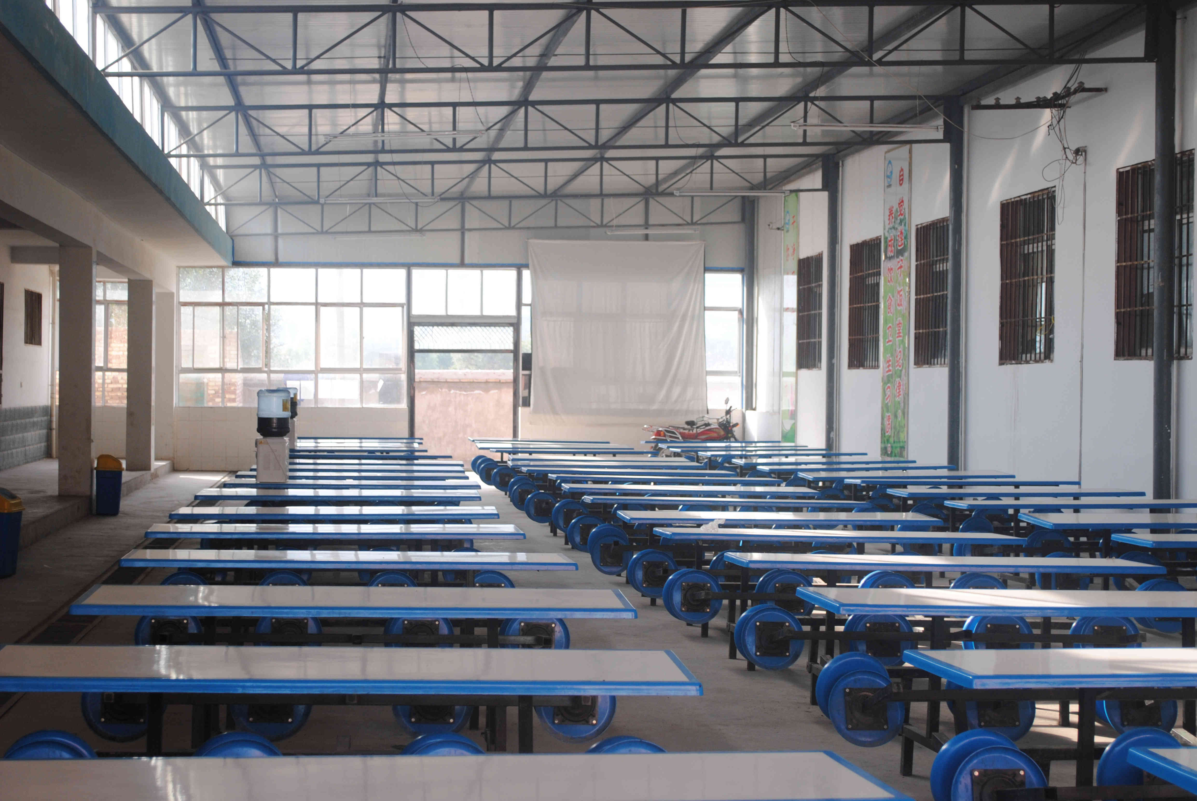 每到饭点的时候,无法抵挡美食的同学们窝蜂似的冲出了教室,跑向食堂,打到饭之后坐在餐桌上品味。从食堂出来,绕到女生楼后面,在下几个台阶,就到了操场,体育设施应有尽有。怎么样,我们的学校还不赖吧。