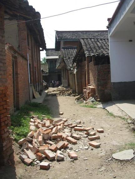 这种现象持续了一会儿后,后来才停了下来,等我们来到周围的民房时,眼前的景象使我们不忍心看。由于我们这儿经济条件不太好,农民大多修的是土坯房,这种房一震就倒。几乎所有的房子都倒了,剩下的一些也东倒西歪了,人们坐在废墟上只有号啕大哭,难道这就是大自然的威力吗?
