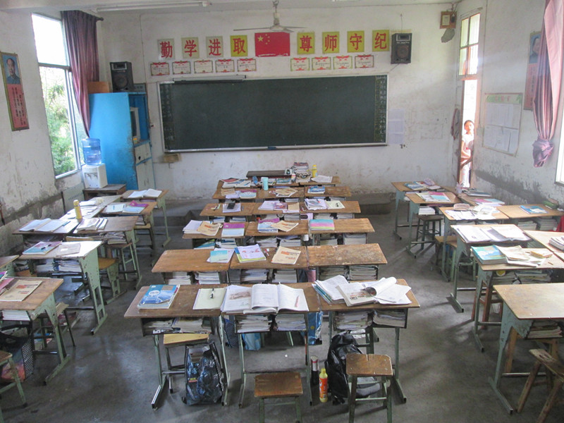 我的教室和其他的教室有所不同,我的教室是由我的班主任改良的成果。别的教室都是中间由四路组成一排一排的,或者由六路组成一排一排的;而我的教师则是中间由三路组成的六排——也就是三个组;两边是由四个组组成的,这四个组的形式都是一样的;这样的布局和北京的故宫的形式有一点相雷同——都是轴对称图形。
