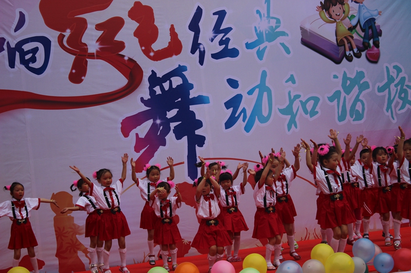 不一会儿,表演开始了,我们都提着板凳往操场上走,按顺序坐下,我们是第二上场,四二班第一个上场。我们又激动又紧张。当老师喊"开始表演"时,我们还以为我们得做准备了,谁知第一个上场的却是幼儿园的小朋友。那时,我没心情看,就"借"了同学一用,我便眯了一会儿,过了一会儿,老师让我们做好准备。我们走到了舞台的一边,等候着,老师告诉我们上场时要笑,跳完了要鞠躬。我们便上去跳了。我们跳的舞蹈叫《老师、老师》,我跳得很认真,并且也笑了,就是不知道我后面的人跳得怎么样。跳完了,我们便下场等候着结束。