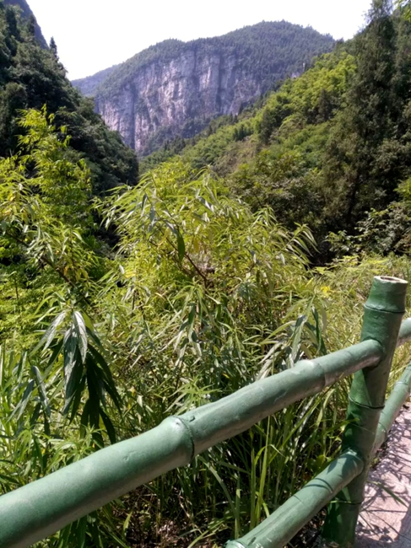 到达景区已接近十点,匆匆买好票吃完饭后,我们便进入景区了。第一个游玩项目是索道,大姐因为恐高便坐在了姐姐和哥哥的中间而且一眼都不敢看下面,我可是一点都不怕哦!在索道上,只看得见蓝蓝的天空和翠绿的山峰,真是景色优美。游玩过索道后,我们便徒步进入峡谷了,上峡有清凉的溪水,我急忙脱掉鞋子,将脚一下扎进去,真凉爽啊!顶着火辣辣的太阳前进一段时间后,我们便来到了中峡。越往峡谷下面走,道路越发显得狭窄,特别狭窄的地方竟然只能通过一人。日光已经不太能进入到峡谷中,也给我们带来了大自然的清凉。