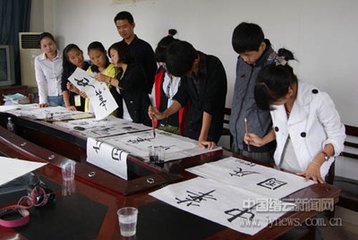 进入大厅,领到教室号后,就陆续去准备了。桌上已铺好了毡布就等我们了。教室里有各校的人:实验中学的就占了好几个,我心里想着:这次的对手真强大呀。不过我自己还是可以冷静,拿出纸、折好格子、润笔蘸墨,一切准备就绪。