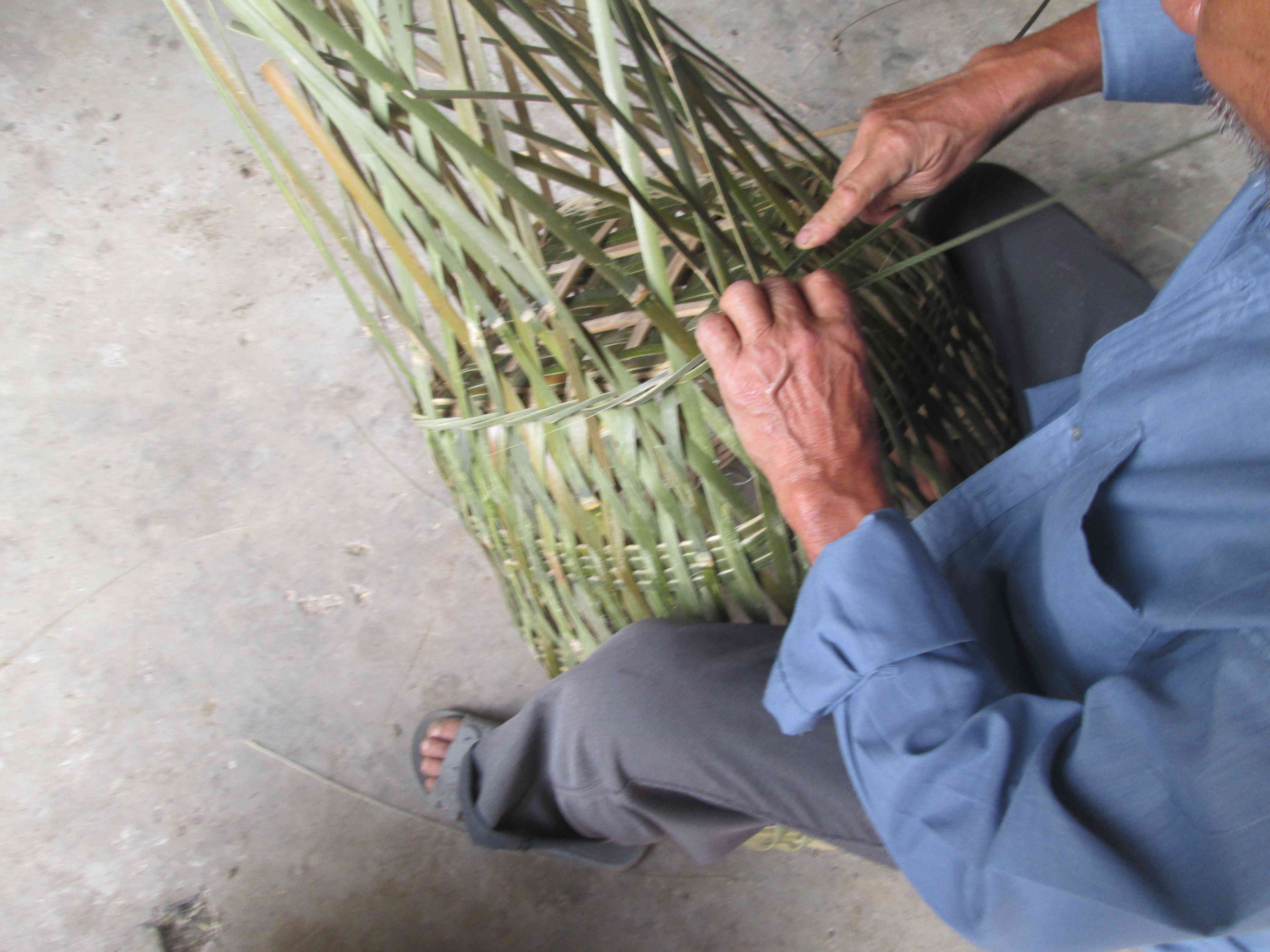编苕篼篼与编背篼不太一样,苕篼篼是用来洗红薯的,所以不能编太大,而且与背篼的形状也不太一样,但其他基本步骤都是一样的。