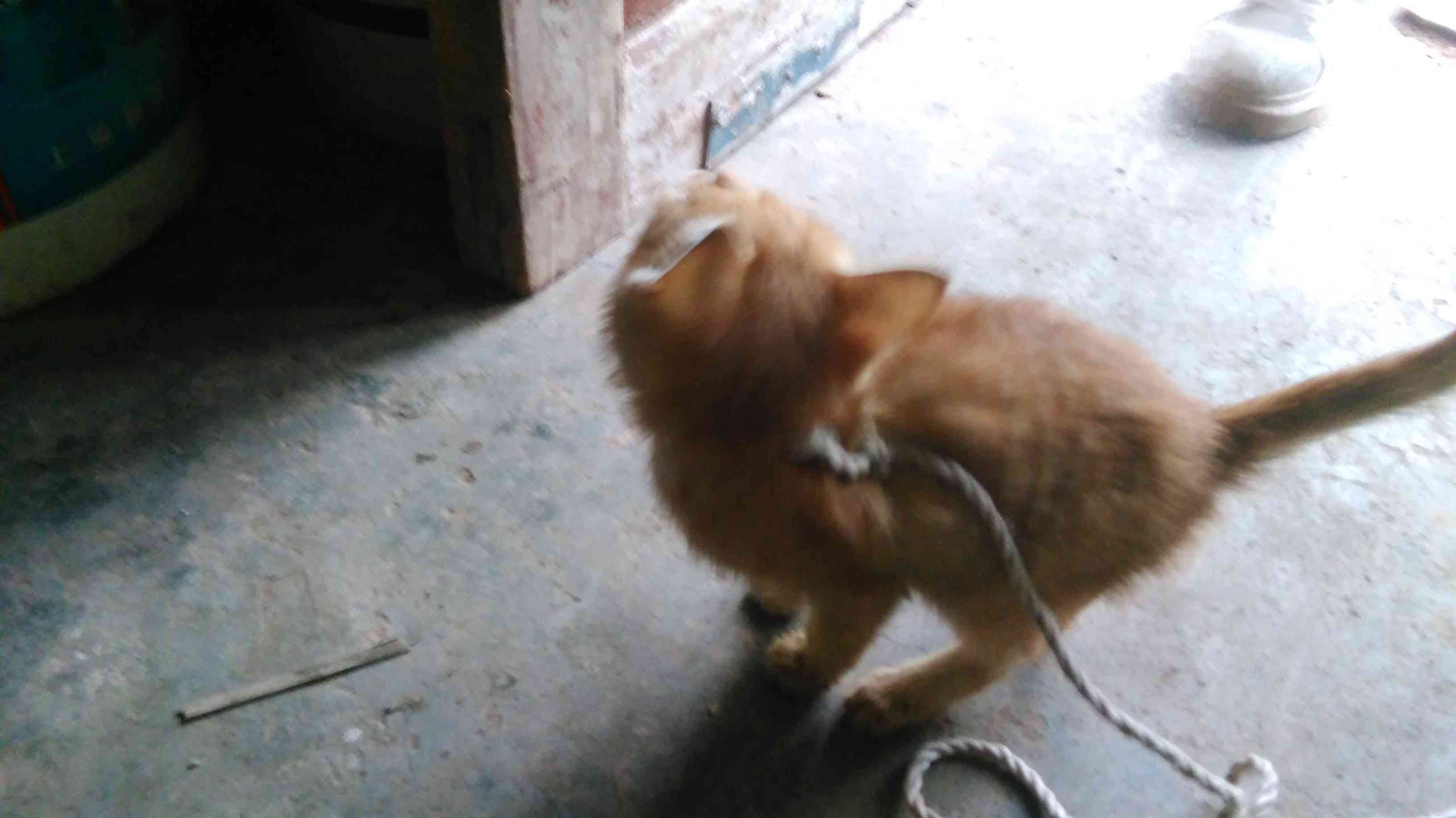 小黄很淘气。沟里的米虾,地上的树叶、谷草,缝裤子的线团……都是它经常玩弄的东西。它喜欢在木门上磨爪子,喜欢到处跑来跑去,一会儿蹲在墙角,一会儿又跳到木桌子顶上四处张望,一会儿又去捕蝴蝶、赶小鸟……每天浑身都是劲。就算遇上邻居家的大黑狗,它也敢斗一斗。只见它眼睛瞪得又大又圆,死盯着大黑狗,还发出“呜—呜—”的声音,似乎在向大黑狗示威,警告大黑狗不要靠近它。人家大黑狗却仿佛没看到似的,依然朝它走来。突然,只见小小黄露出尖牙,发出“咝—咝—”的声音,用锋利的爪子猛地把大黑狗的鼻子抓出了几道口子,大黑狗猝及不妨,痛得“嗷嗷”叫,便跑开了。再看看小可爱,却还站在远处,死死地盯着大黑狗远去的方向,好像时刻在等待大黑狗的反扑。