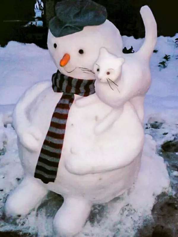 第六福,大家看这是什么?一个大胖子独自一人站在雪地里,不,他不是一个人,肩膀上还有一只小白猫,小白猫一直都陪伴在他身旁,胖子再也不会孤单了,你看他的帽子和鼻子很特别吗?你知道用什么东西做的吗?你会做吗?