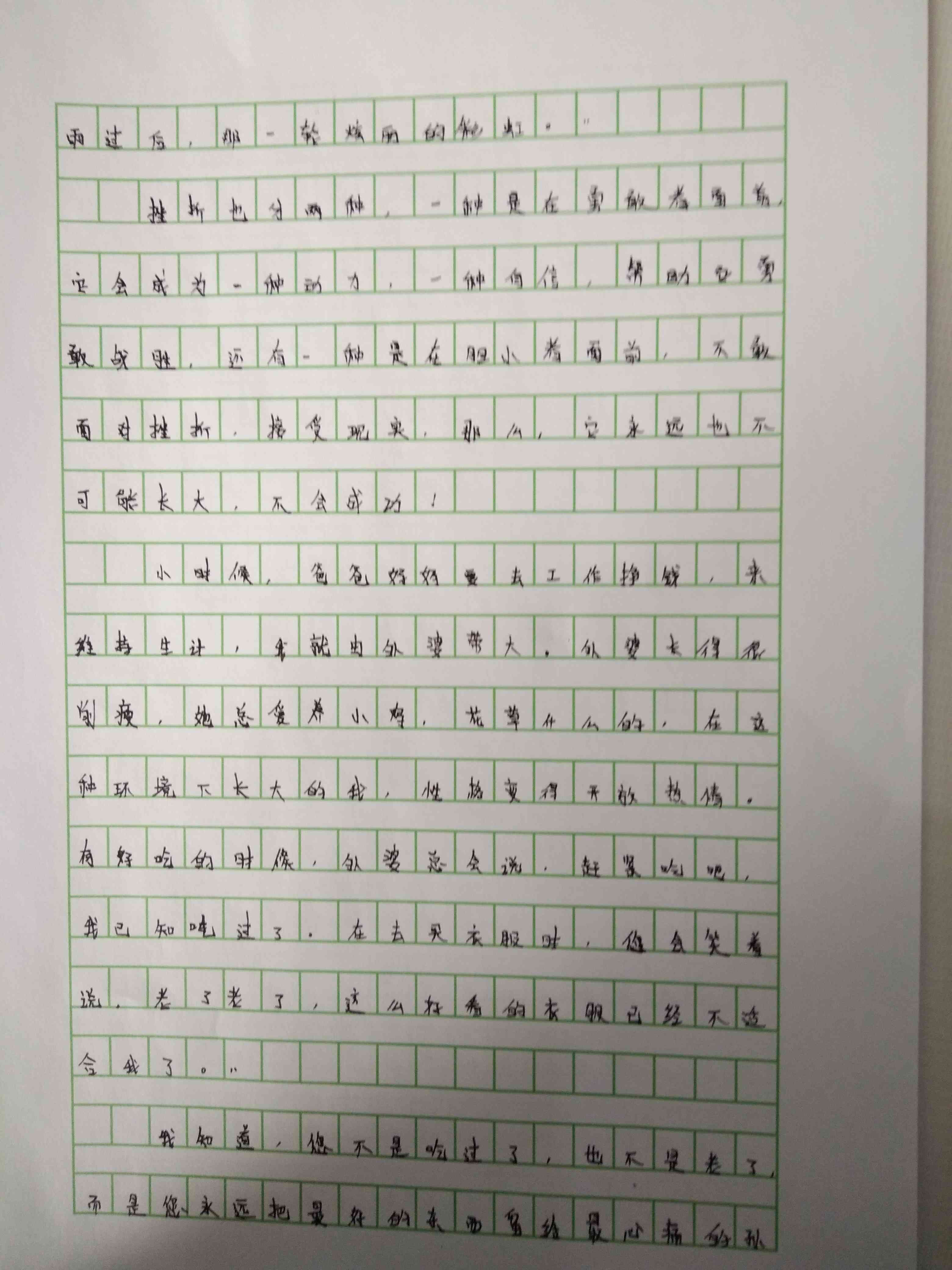 我想,外婆生前是多么开朗的一个人,小孙子一定不能哭,不能让你放不下我!外婆走后我感觉我好像长大了,已经没有了那衣来伸手,饭来张口的好日子了,那段时间里,我才感觉到不当家不知柴米油盐贵。