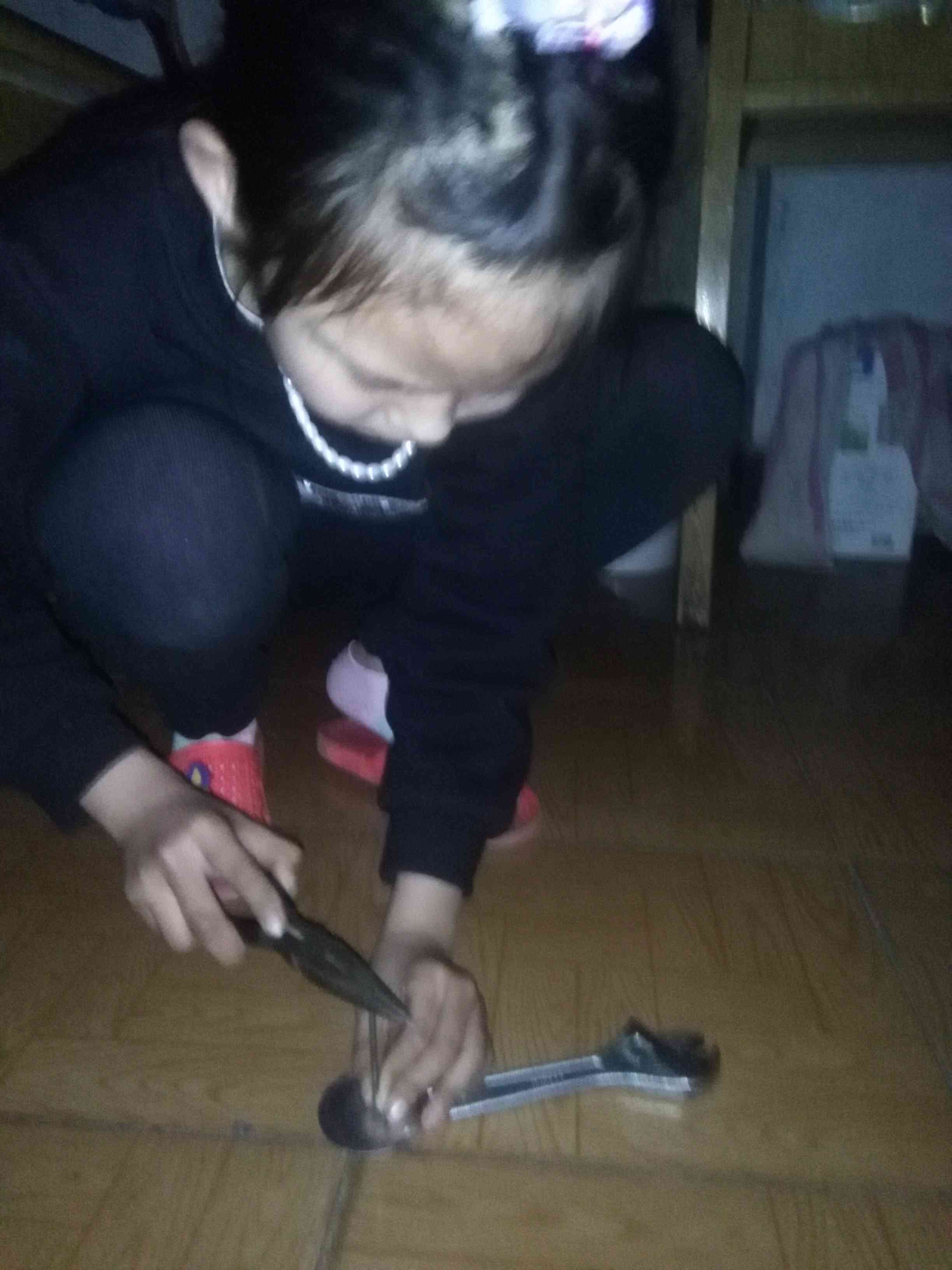 一天,家里停电,也没有蜡烛,我就想到了妈妈小时候用的煤油灯,死缠烂打的要妈妈教教我,妈妈没法子了,只得教我做。我们就高高兴兴的忙活起来了。首先,我们找来一个小的铁罐子,那是用来装煤油的。接着,我们用一个小铁片,在上面打个小孔,小孔里装上细铁管,这是要装捻子的。我问妈妈:“捻子用什么做最好呢?””当然是棉线了,因为丝线不吸油点燃后就化成胶粒,而棉线吸油多,火更旺。”“噢”我们穿好了捻子,接下来,等煤油顺着细捻慢慢吸上来,就可以点灯了。我刚点了捻子,像毛笔头一样的的火苗就窜上来了,并且还有一缕黑黑的浓烟飘起。