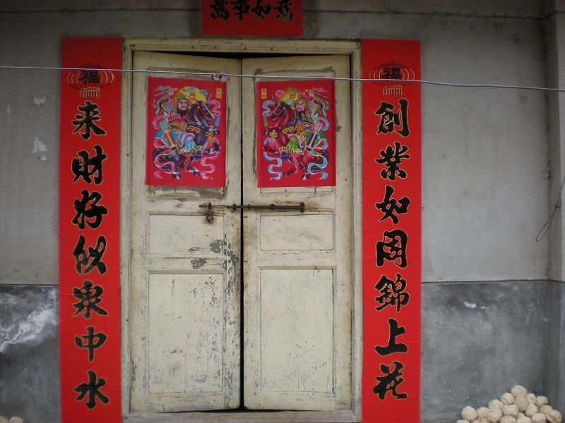 到了大年三十这一天,这不,平常大家还在睡大觉的时候,在今天,人们都早早的起床了,忙里忙外的。贴春联,男女老少都盼着这个团圆的日子。在除旧迎新之际,门口大红的春联,是一道亮丽的风景。别看这活轻巧,不累,但却很麻烦。首先要熬浆糊,等它稍微冷一下以后,盛到碗里,然后用刷子将浆糊刷在对联上,这时一个人捏着对联的上端,一个人捏着对联的下端,和门框对齐后并粘在门框上,这样对联就贴好了。