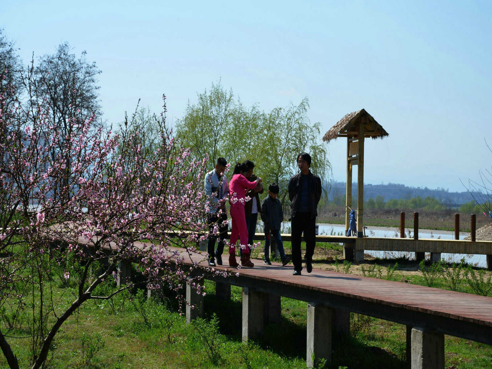这里有垂下头的柳树,和开满粉红色桃花的桃树,地上长满了绿绿的青草,因为春天是去渭河的最好时机,柳树上长满了青绿色的嫩芽,旁边的桃树开了满树的桃花,每年春天我都会来这儿,因为这是春天渭河边特有的景色。