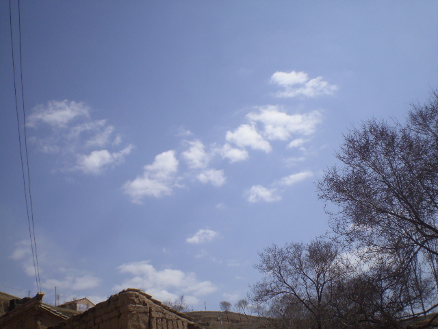 雪白,雪白,如棉花般软软的云,遍布整个天空。它们运动着,变化着,却从不会离开同伴的左右,总是那么一大片一大片的,好像没有边界。