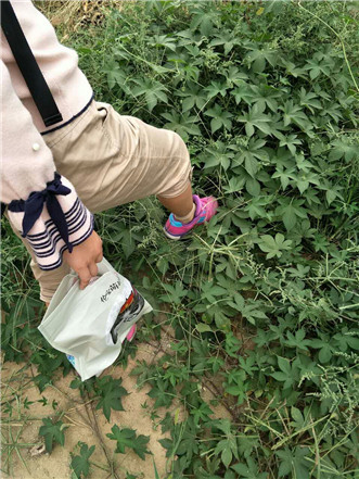 当我们细细看她时才发现她是多么可爱,叶子上的“头发”我忍不住去动它再回来的路上我被那可爱折服了。