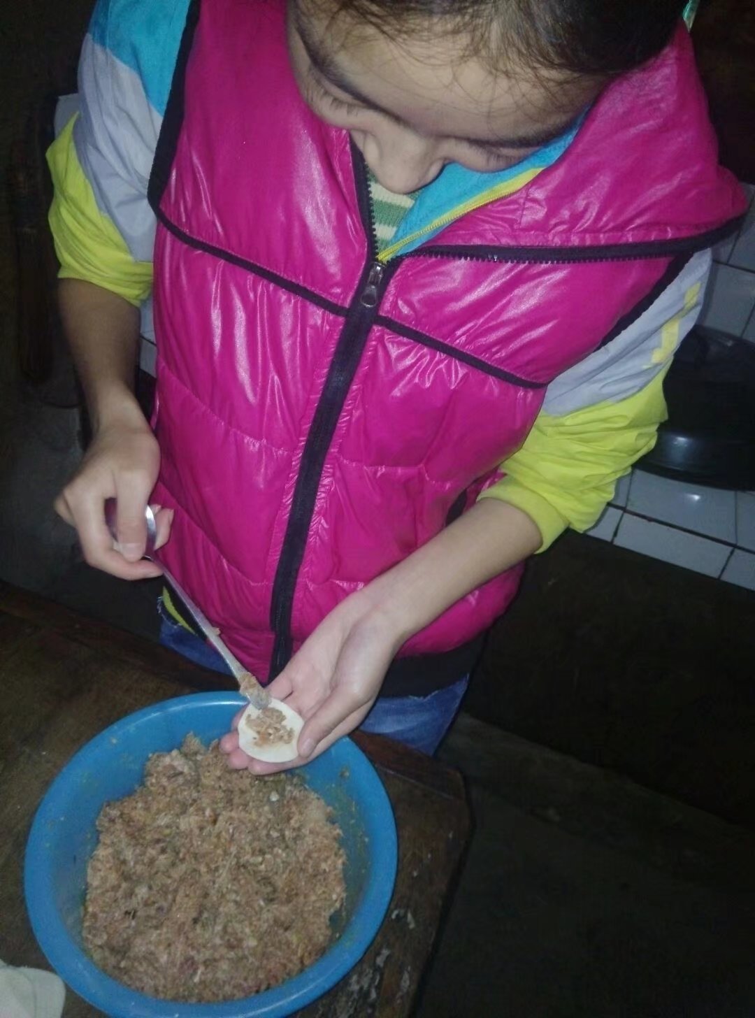原来自己在母亲那里学到了这么多呢!我一遍一遍地包。外婆在一边生火烧水,母亲手把手地教我包,可我着实太笨了,包的饺子有的馅儿太多了,有的皮太薄了……总之,没一个完美的,幸好有母亲在旁边指导,我才不放弃,一遍遍不耐其烦地包。到了最后,手法愈加娴熟,包的和母亲差不多了。饺子终于下锅了……