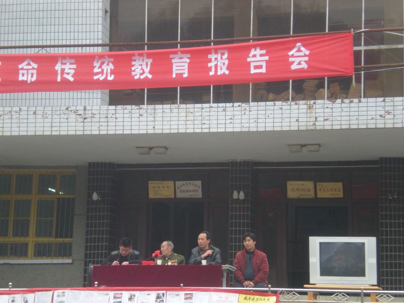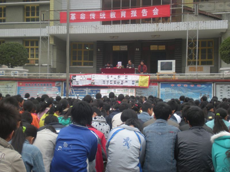 那一天,天气很阴暗,天空中飘着绵绵细雨,还带着春天来临时的丝丝寒气。突然,从校广播里传来:“请全体师生到操场集合”...还没等说完,随之而来的便是一阵阵叹息。于是,我们很不情愿的走下楼去了。刚到操场,“革命传统教育报告会”,醒目的标题便引起了我们的注意。