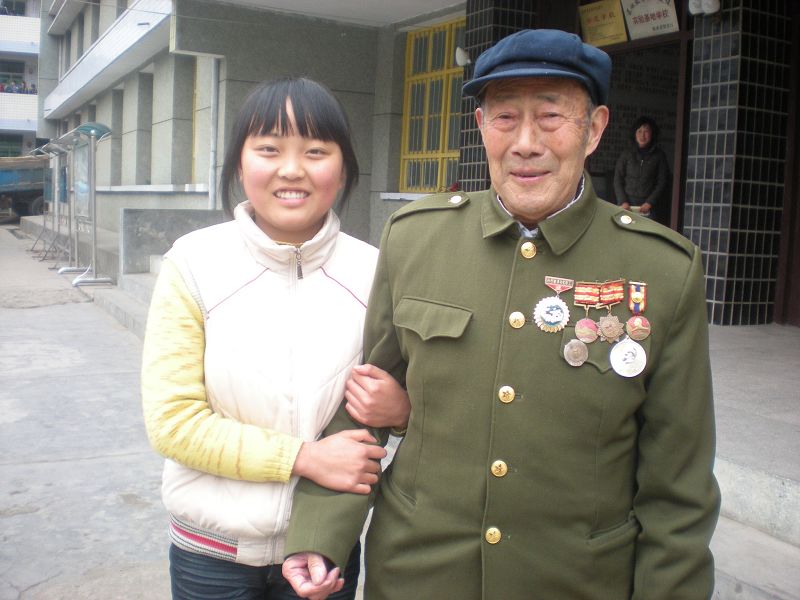 老人的身躯还是那么挺拔,在风雨中为我们讲述自己参加革命的光荣事迹,回忆战争带来的艰辛和贫困生活,以此来鼓励我们要好好学习,珍惜现在的生活。