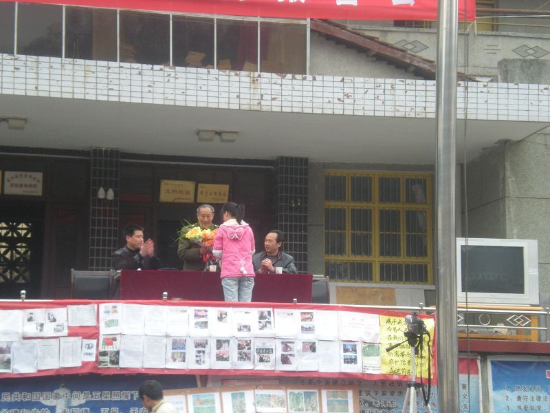 报告会结束之后,老爷爷亲切的与我们交谈着,为我们讲述他那时候的艰苦,以此来激发我们。在老爷爷走之前,好多同学都来与他拍照留念。当然,我也不例外。