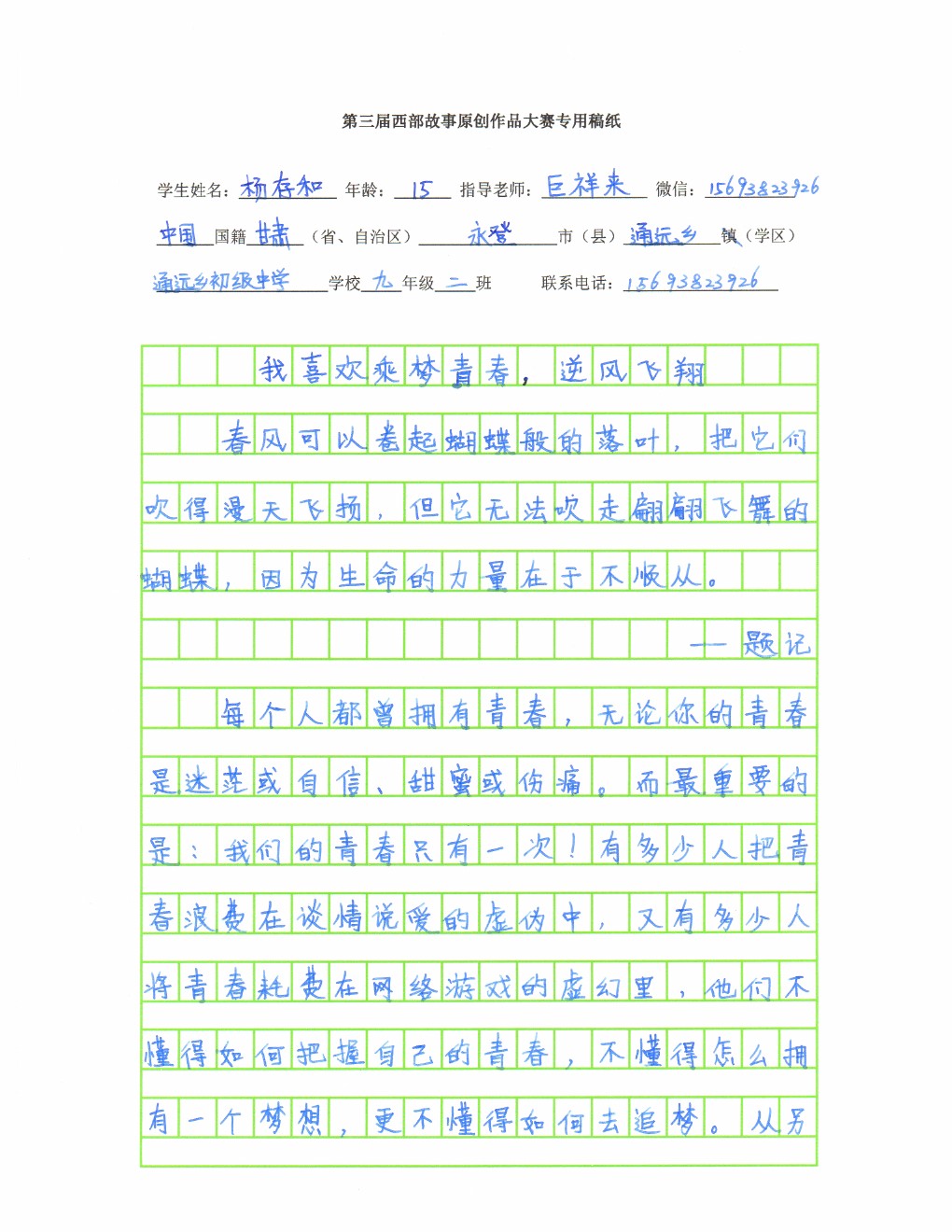 如今坐在初三的教室,感受着和谐温馨的气氛,享受着朝气蓬勃的青春,肩负着父母给我的责任,我更加明确了我的目标:要考进一所理想的高中,不让父母失望,不给自己留下遗憾。是的,我已经长大了,我懂得要对别人心怀感恩,要承担起自己的一份使命,要趁着青春去飞翔!