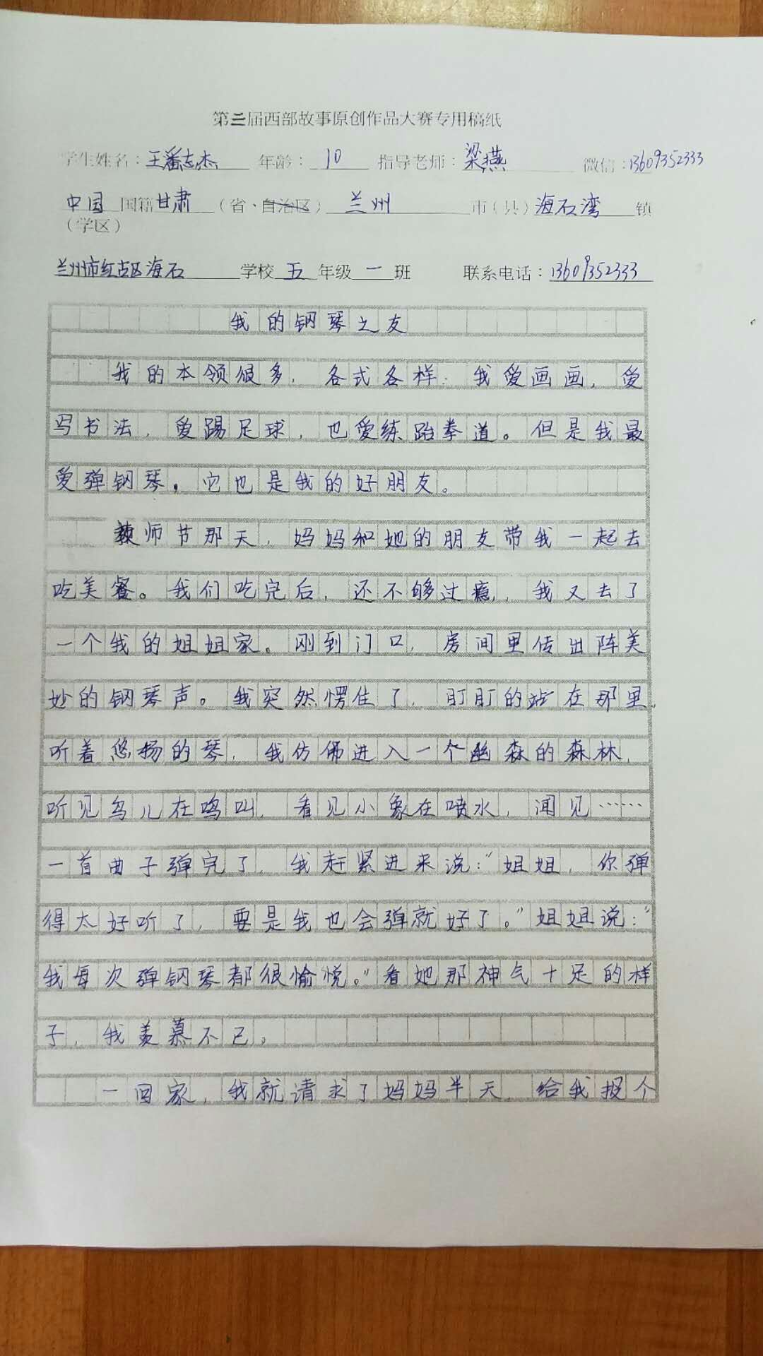 一开始我兴趣浓浓,但弹了两个月,就感到了枯燥、乏味,因为我对五线谱不熟,认起来也很吃力,就要放弃,妈妈似乎看出了我的心思,语重心长地对我说“做任何事都要坚持不懈,持之以恒。”我又找回了信心,继续练了下去,我上课认真听,有空就练钢琴,五线谱上,每个音符都是一个小精灵,当我心急如焚练的不好的时候,它们在嘲笑我。我立下誓,一定要给它点颜色看看,也是在我灰心时,又是它让我有了信心。现在,我觉得弹琴是件轻松愉悦的事。它不仅消除了我的烦恼,也磨练了我的意志。所以,它是我不可缺少的,也是我唯一的“好朋友。”