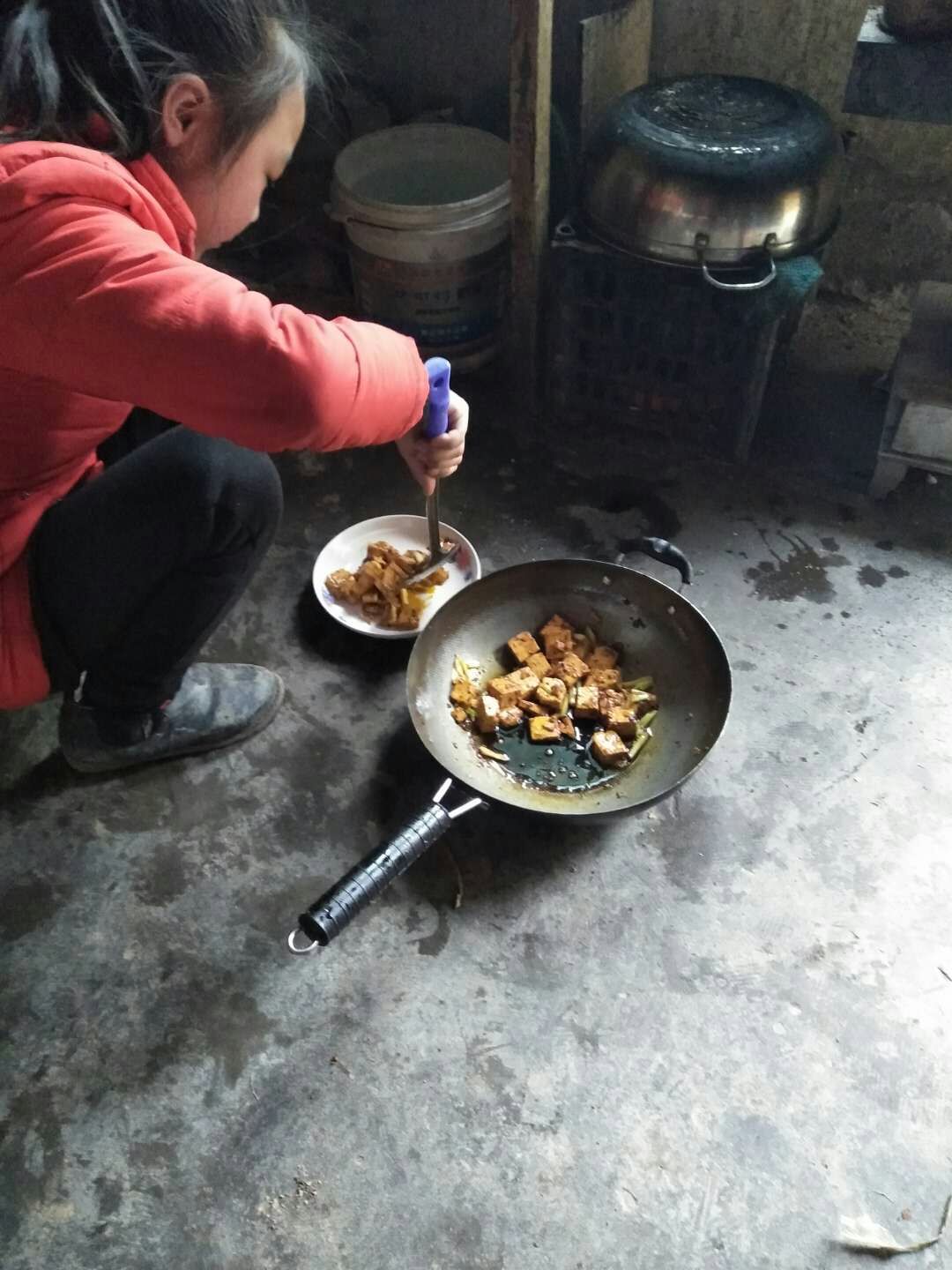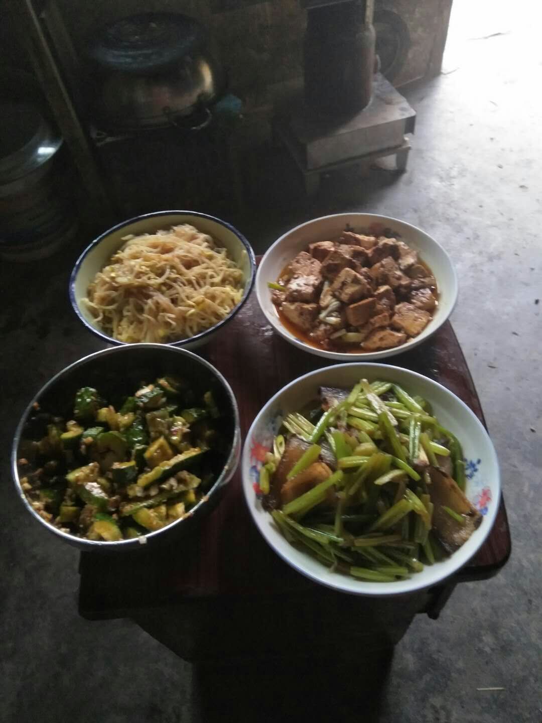 在妈妈的指导下,我先把豆腐洗干净切成一个个小方块儿,再把黄瓜也切成小块,然后我把焯好晾在盆子里的粉条滤过水,把它们分别装在三个盘子里,最后我按照妈妈教我的方法在电饭锅里蒸上了米饭。等这些准备工作做好后,我就准备好炒锅开始炒菜啦!