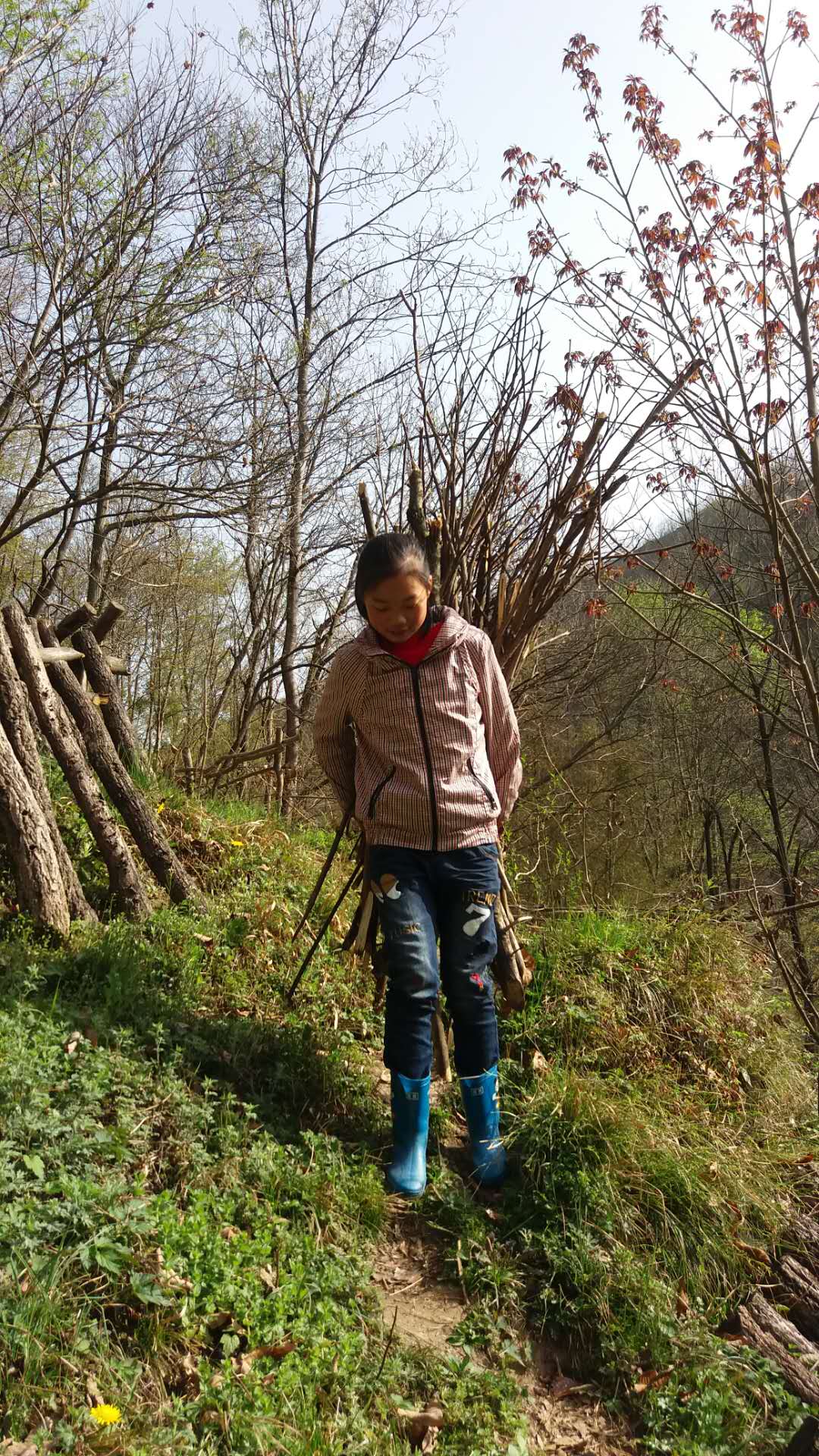 早晨,熟睡的花儿露出了它那可爱的脸庞,鸟儿在枝头扇动着翅膀在为我舞蹈。在这春光明媚的时候可是我还在被窝里睡觉,忽然,我想起了昨日和舅舅的约定,于是我从美梦中醒了过来。吃过早餐就拿着绳子和舅舅上山挑柴去了。