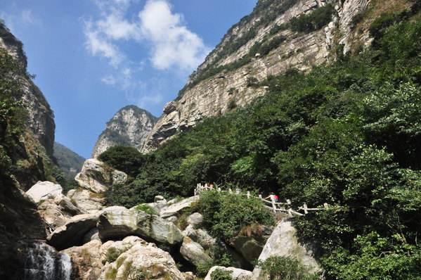 那是缓慢依依的时刻的雾,这里山边的雾是转眼即逝的,你看,当游客依然沉醉在浓郁的白色里,那白色在一抹间就飞走了,散的那么快。原本一声不吭的深涧边的大石头,崭露头角,抹去凹凸不平的感觉,它们再一次静静交谈了,谈论雾之深远,谈论镜头的长短,谈论飞鸟的去留,谈论着历史千年,全然不管雾的去留;那些绿色的草木也开始在镜头里频频闪现了,在卖弄着风姿,在感受着陌生的脸孔,在心花怒放,全然不管雾的去留。雾走了,雾还会再来的。仿佛吃饭一样,一日三餐到了时间就要开饭了。这儿的雾是每天必来,只是时间不是一日三餐那么准时,因为它们是自由的