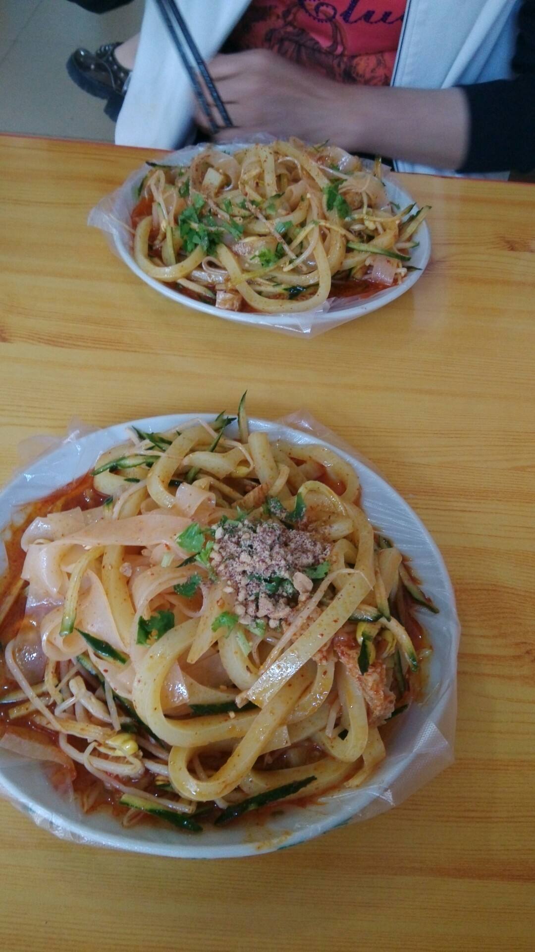 凉皮属于粉丝做法之一,只不过比粉丝更宽一些,颜色比粉丝更白一些,蒸熟的凉皮切成长条状,撒上切好的面筋,拌上蒜末麻油,醋,酱油,芥末,味精等调料,那简直人间就没有第二味了。每当走到永兄超市下面,有一家卖凉皮的,他家凉皮的味道,真让人回味无穷,你只需坐下来,吸溜吸溜地吃,真是爽滑可口,消暑解热,堪称盛夏时节大众喜爱小吃了。