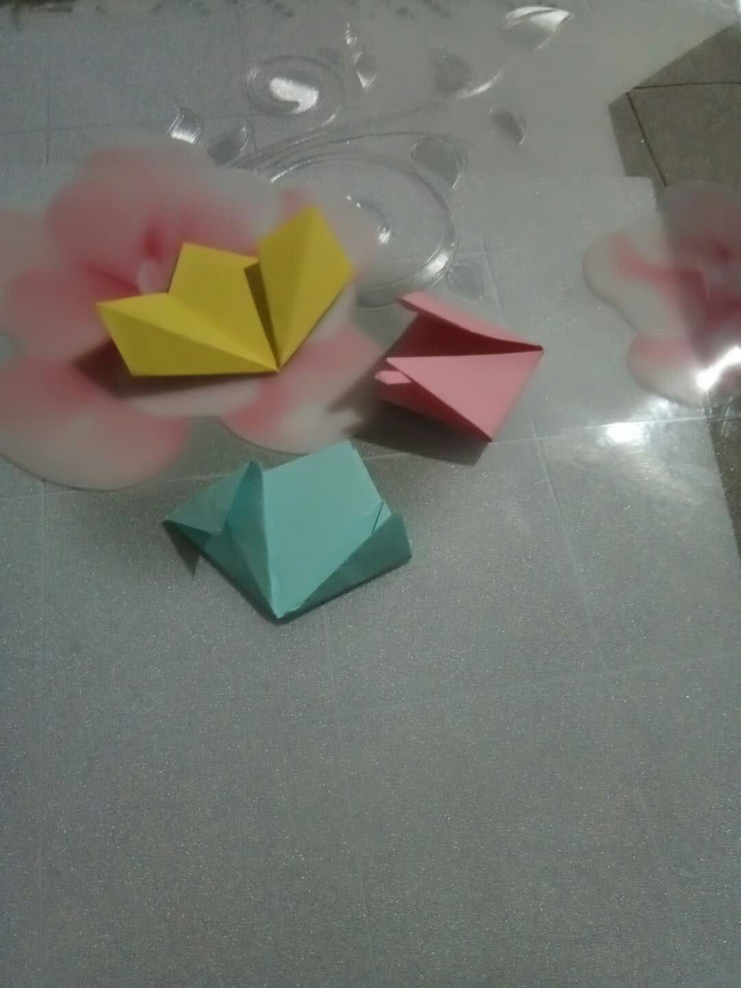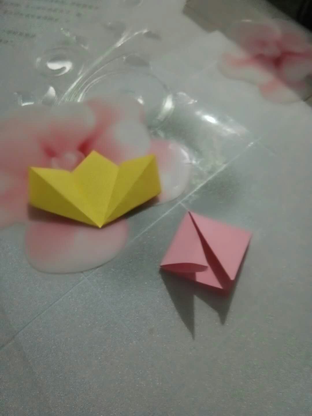首先要准备五张粉色的正方形纸,先试试吧,看看效果如何。