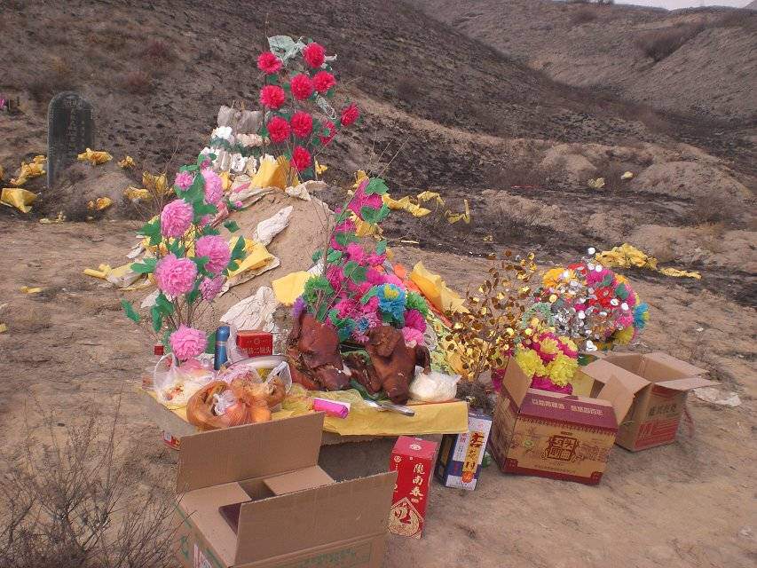在我们这儿还有这样一个习惯,正常是只上一次坟的,但如果在过去的一年里家中有人去世,那么,在清明这时候便要上两次坟,新坟和旧坟。而且,还有一个讲究便是新坟要在"放射"之前上。
