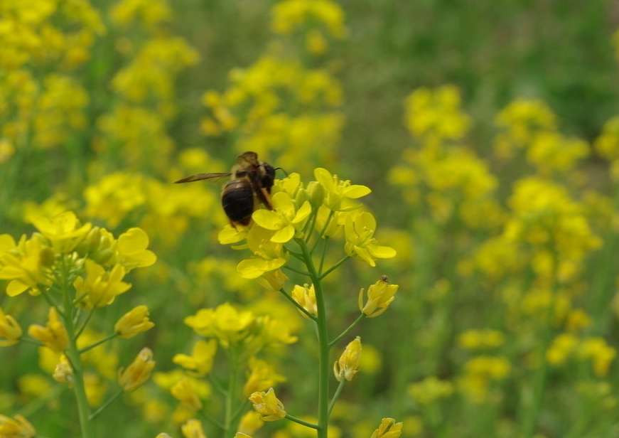 最使我陶醉不已的是油菜花和桃花的芳香,靠近闻一闻还有淡淡清香,沁人心脾,那味道香极了,无处不在。仔细瞧!上面还有几只蜜蜂,在辛勤劳动呢!此时,那一片芳香的菜花地,喳喳的鸟儿,翩翩的彩蝶都飞来迎热闹。他们吮吸芳香,采集芳香,酝酿芳香,一片其乐融融的景象使我也融入其中。