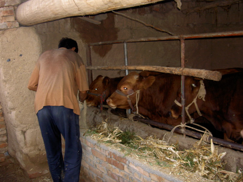 在配好草料后,爸爸会在饲料这方面做到全方位的"跟踪"服务,如根据每个牛的食量,对草料的承受能力而再添加适量的草和料.在爸爸给牛列食谱的"前言"中就是要保证牛的一日三餐,及两次充足的供水,这样有利于牛的健康成长.喂完牛后,爸爸就会乐呵呵的观察着牛,体察牛情,可谓是对牛的情况知根知底.