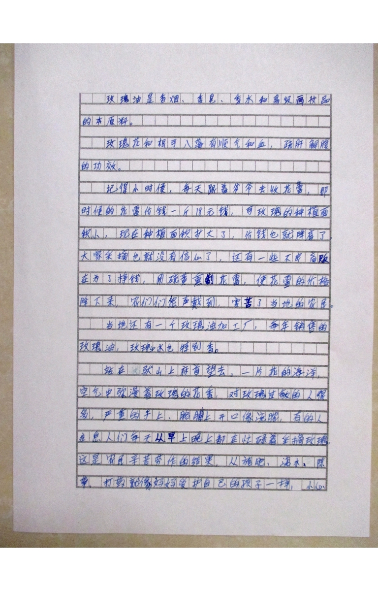 记得小时候,每天都跟着爷爷去摘花蕾,那时候的花蕾价钱一斤18元钱,可玫瑰的种植面积小,现在种植面积扩大了,价钱也就降低了,大家采摘也就没有信心了,还有一些不良商贩在为了挣钱,用硫磺熏制花蕾,使花蕾的价钱降下来,农民们怨声带到,害苦了当地的农民。