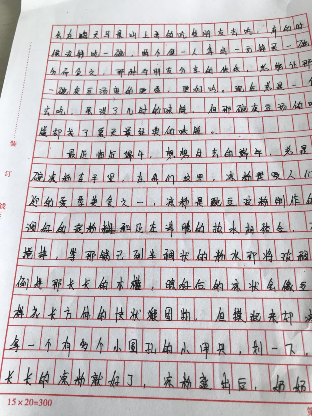 端午总在夏天开始的时候临近,在我们这里,凉粉是受人们欢迎的夏季美食之一,小时候我总围在奶奶身边看她做凉粉。凉粉是豌豆淀粉制作的,调好的淀粉糊和正在沸腾的热水相结合,不停搅拌,等那锅已到半稠状的粉水即将浓稠时,倒进那长长的木槽或是圆圆的大盆,晾好后的凉粉是块状凝固物,会有容器的形状。摸起来凉凉的。拿一个有多个圆孔的小用具,划一下,绕一圈,一碗长长的凉粉就好了,凉粉盛出后,奶奶总会在上面放上泼好油的姜蒜汁,红红的油泼辣椒,再来点儿醋,撒点儿蒜苗,,晶莹剔透的凉粉浸在酸辣爽口的蒜醋汁里,一口下去,食欲大开。奶奶的凉粉是夏天的盛宴。