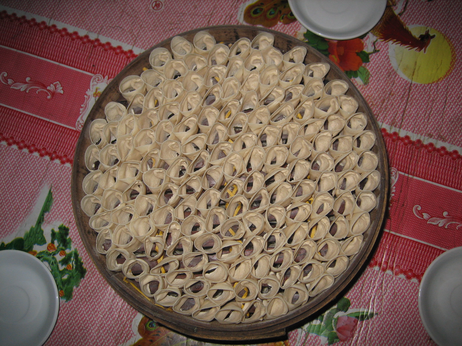 说起莜面呀,它分好几种:莜面鱼儿、莜面墩儿、莜面菜墩儿……但我最喜爱吃莜面鱼儿。他吃法可多了,热沾着葫芦和土豆熬菜,冷沾黄瓜丝或茄子汁儿……