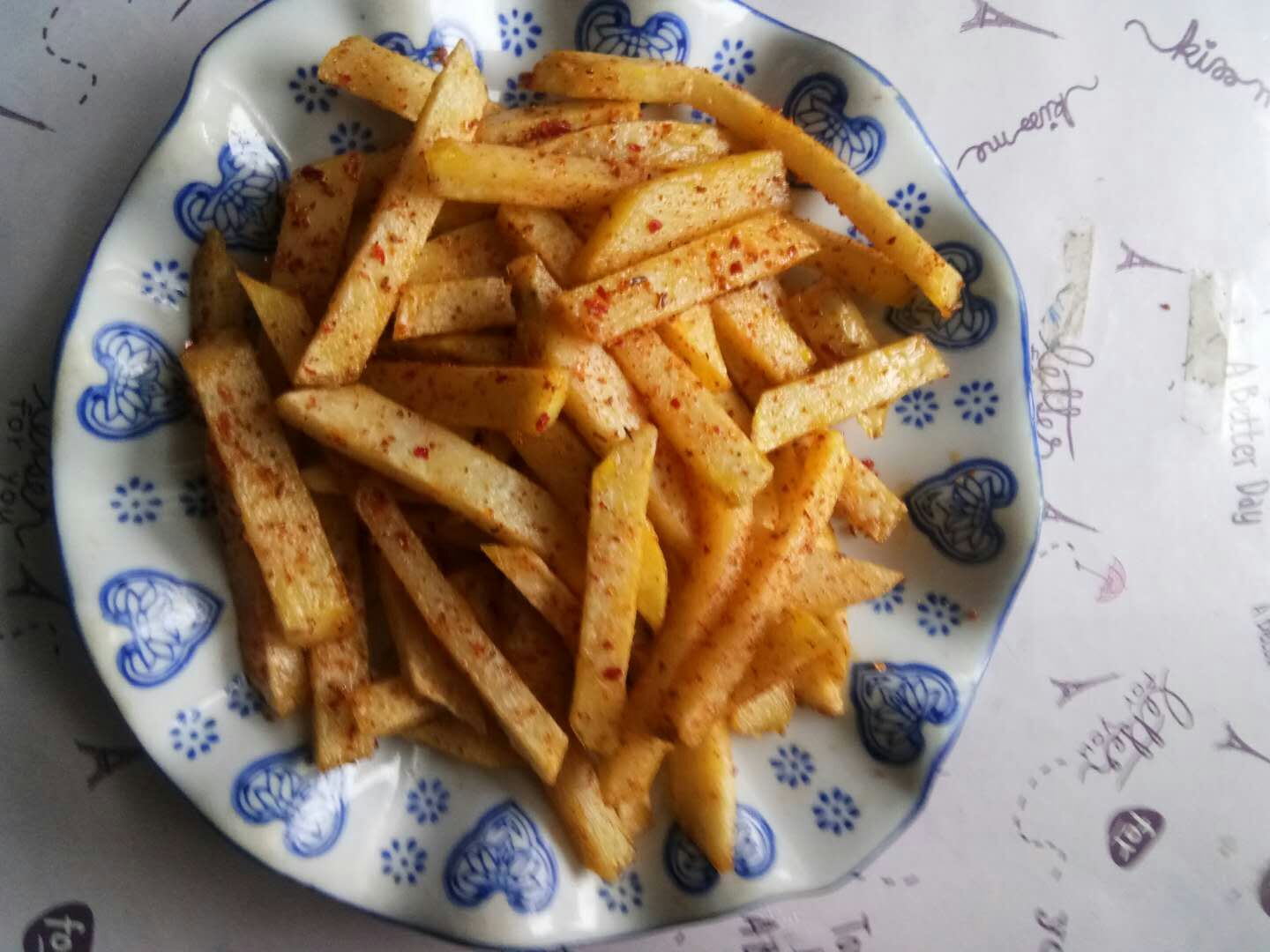 土豆除了炒着吃,还可以炸着吃。先到锅里倒一些油,可以多一点,然后把洗干净的土豆切成片。等油温好了以后,把切好的土豆片放进锅里炸,等土豆炸的,干干脆脆变成金黄色的,就可以出锅了。把土豆从锅里捞出来以后放进一个盘子里然后放上调料,有辣椒面,十盐,自然粉等调料,然后搅拌均匀就可以吃了。我相信大家通过我说的这个过程就可以想象出来,土豆片出锅以后是多么的美味。