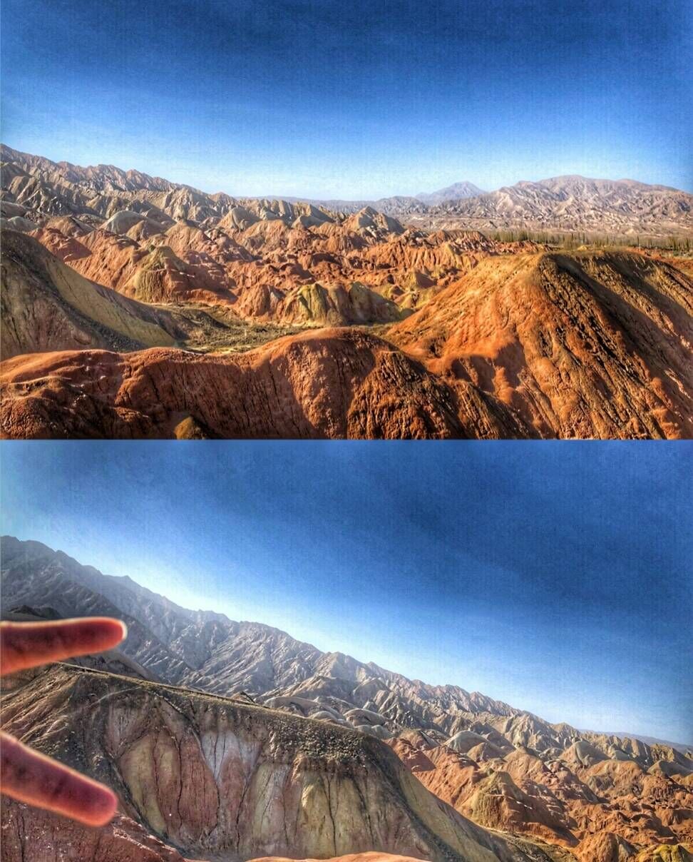 当你仰视时,层次感会依次随着山峦的起伏而加深。当你俯视时,颜色的排列会让你不经感叹大自然的神奇。这种色彩斑斓的彩色丘陵,奇特的景观,是大自然赋予它生命般的力量,被誉为“一眼七彩丹霞 天下群山无色”的奇景。